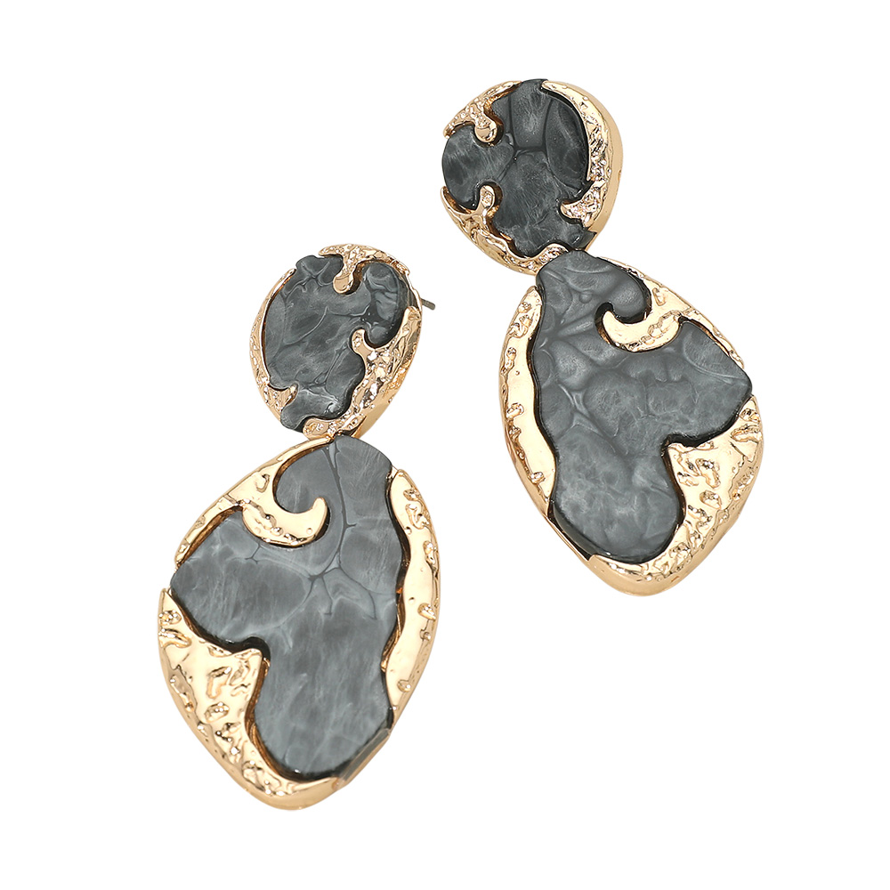 • Bold and sophisticated, these statement drop earrings feature an artistic marbled pattern encased in a textured frame. Perfect for adding a touch of elegance to any outfit, they balance modern style with timeless appeal for both day and evening wear.