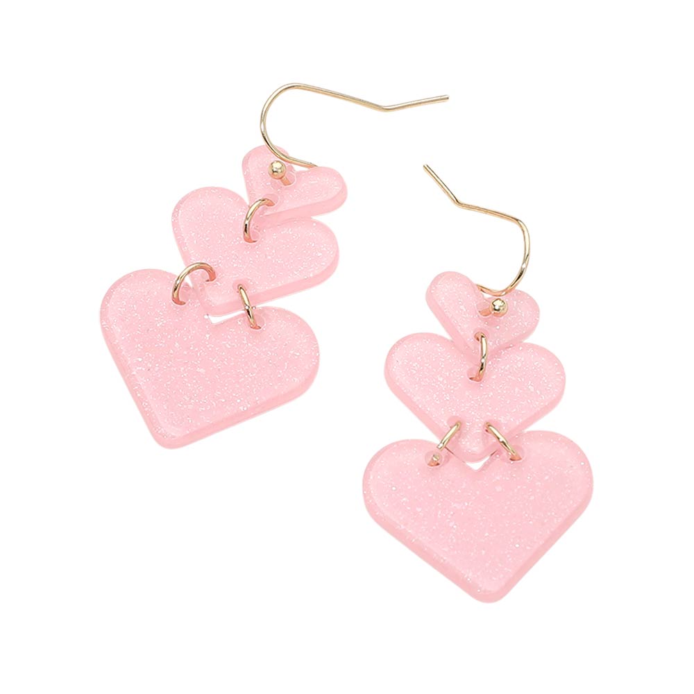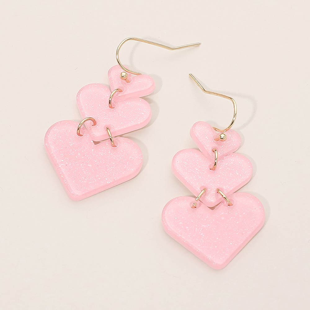 Triple Glitter Resin Heart Plate Link Drop Earrings