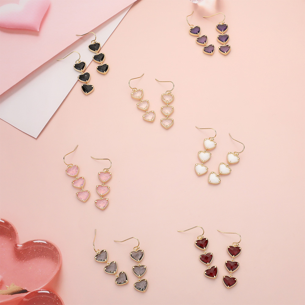 • Chic triple heart drop earrings with faceted stones. Lightweight and stylish, perfect for adding a romantic and modern touch to your everyday or evening look.