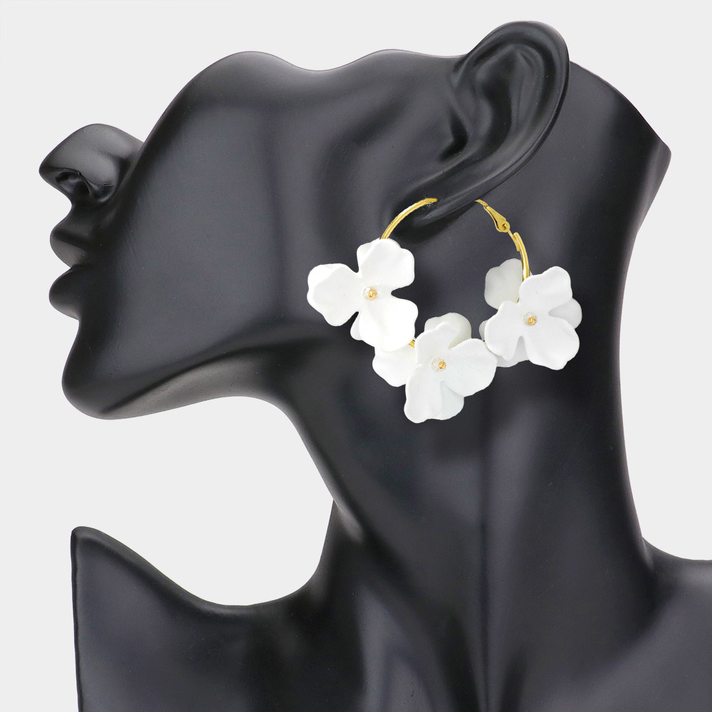 Triple Metal Cut Out Flower Hoop Statement Earrings