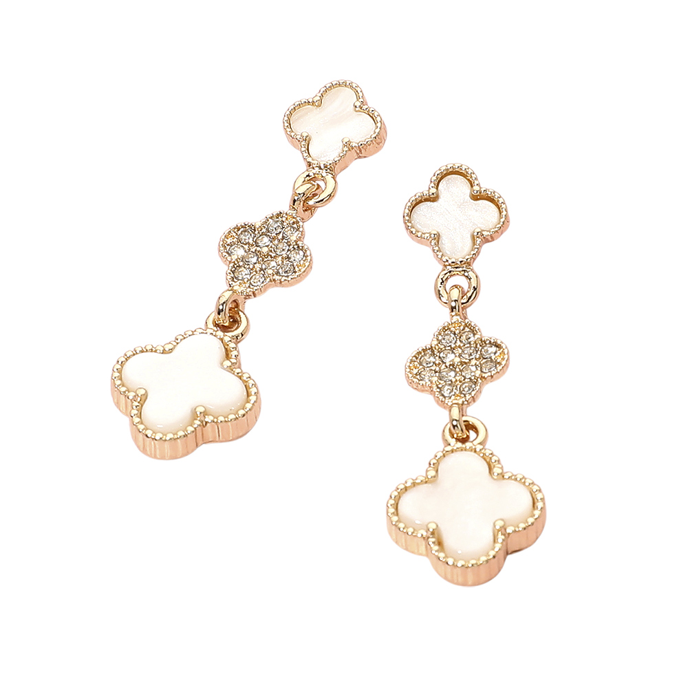 • Elegant drop earrings designed with linked quatrefoil motifs for a graceful, eye-catching silhouette. This refined style adds movement and shine, making it ideal for everyday wear or special occasions. A versatile accessory that pairs beautifully with modern outfits, classic looks, and curated jewelry collections for boutiques and gifting displays.