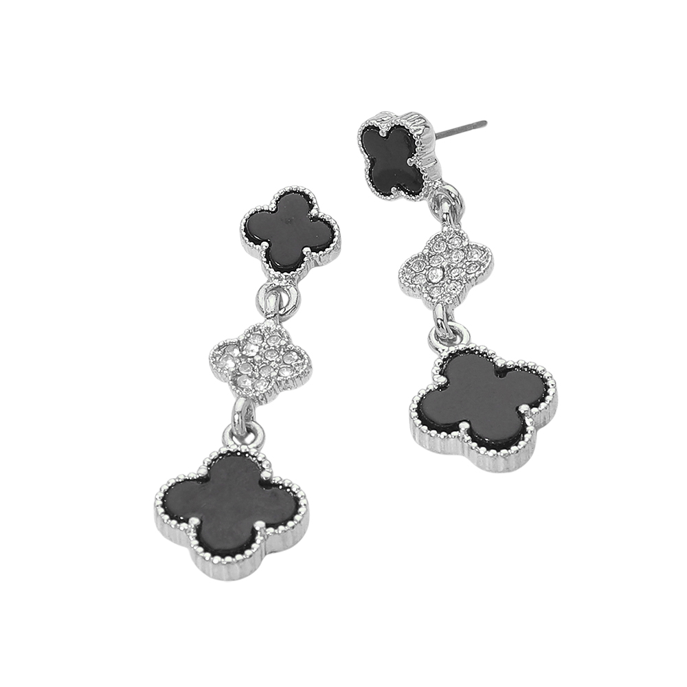 Details • Size : 0.6" X 1.8" • Post Back • Elegant drop earrings designed with linked quatrefoil motifs for a graceful, eye-catching silhouette. This refined style adds movement and shine, making it ideal for everyday wear or special occasions. A versatile accessory that pairs beautifully with modern outfits, classic looks, and curated jewelry collections for boutiques and gifting displays. • Lead and Nickel Compliant