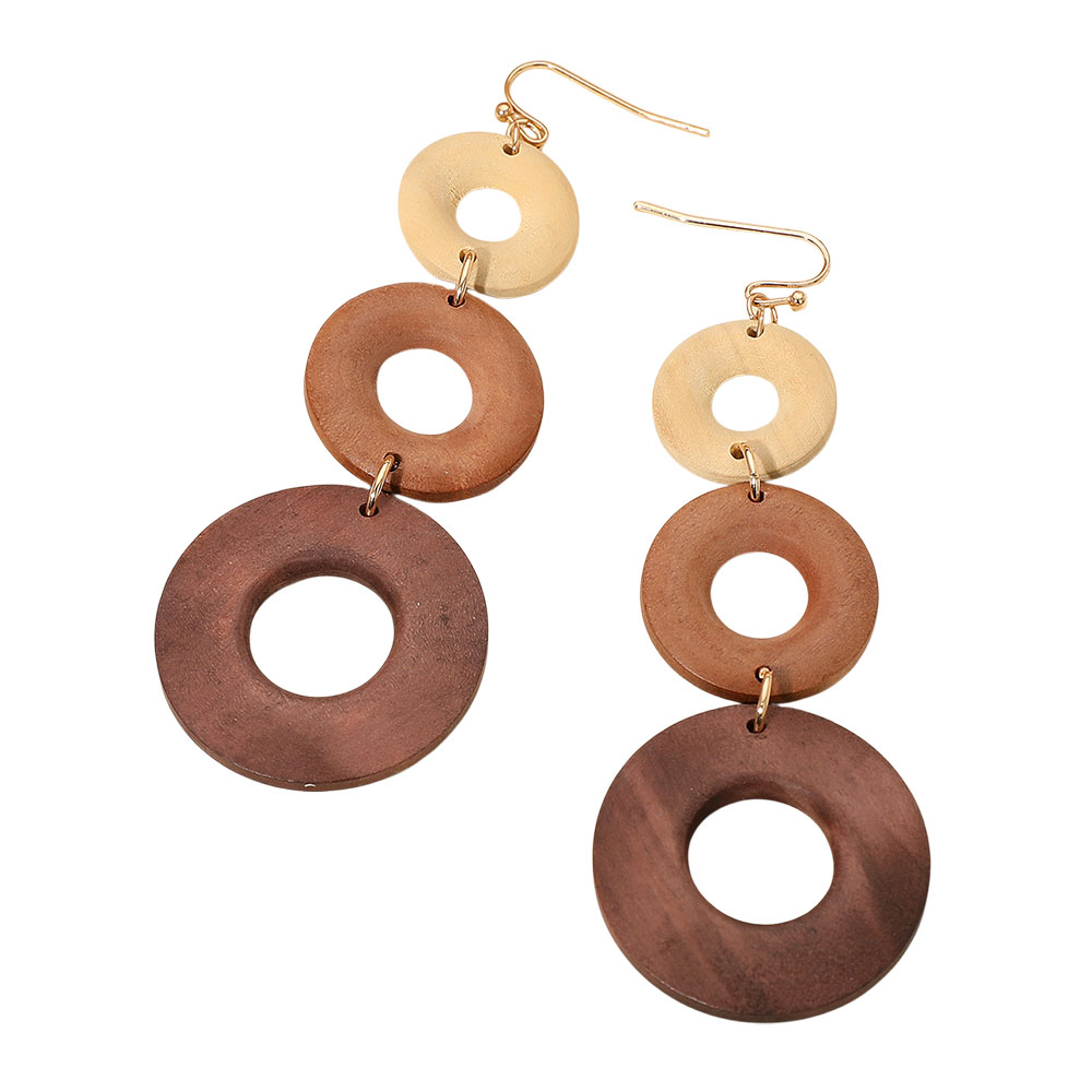 Triple Wooden Disc Link Drop Earrings Triple Wooden Disc Link Drop Earrings