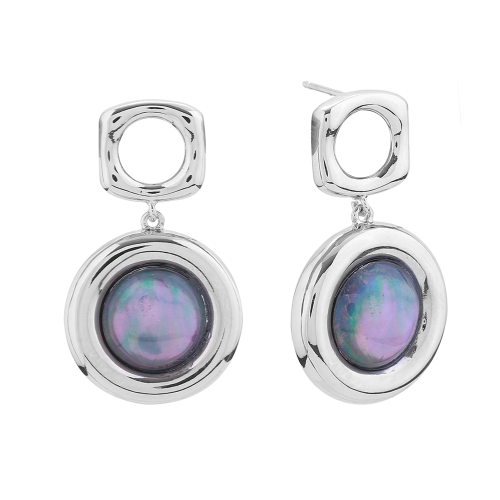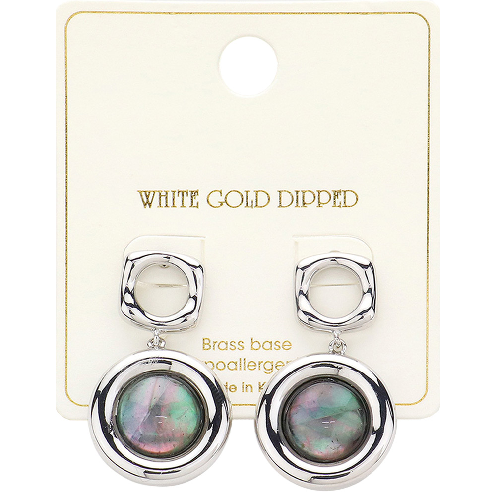 White Gold Dipped Abalone Round Double Drop Post Earrings