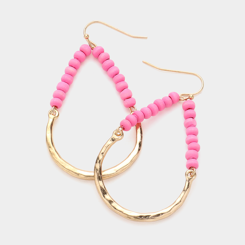 Oversized Wooden Teardrop Charm Chunky Double Layered Statement Necklace