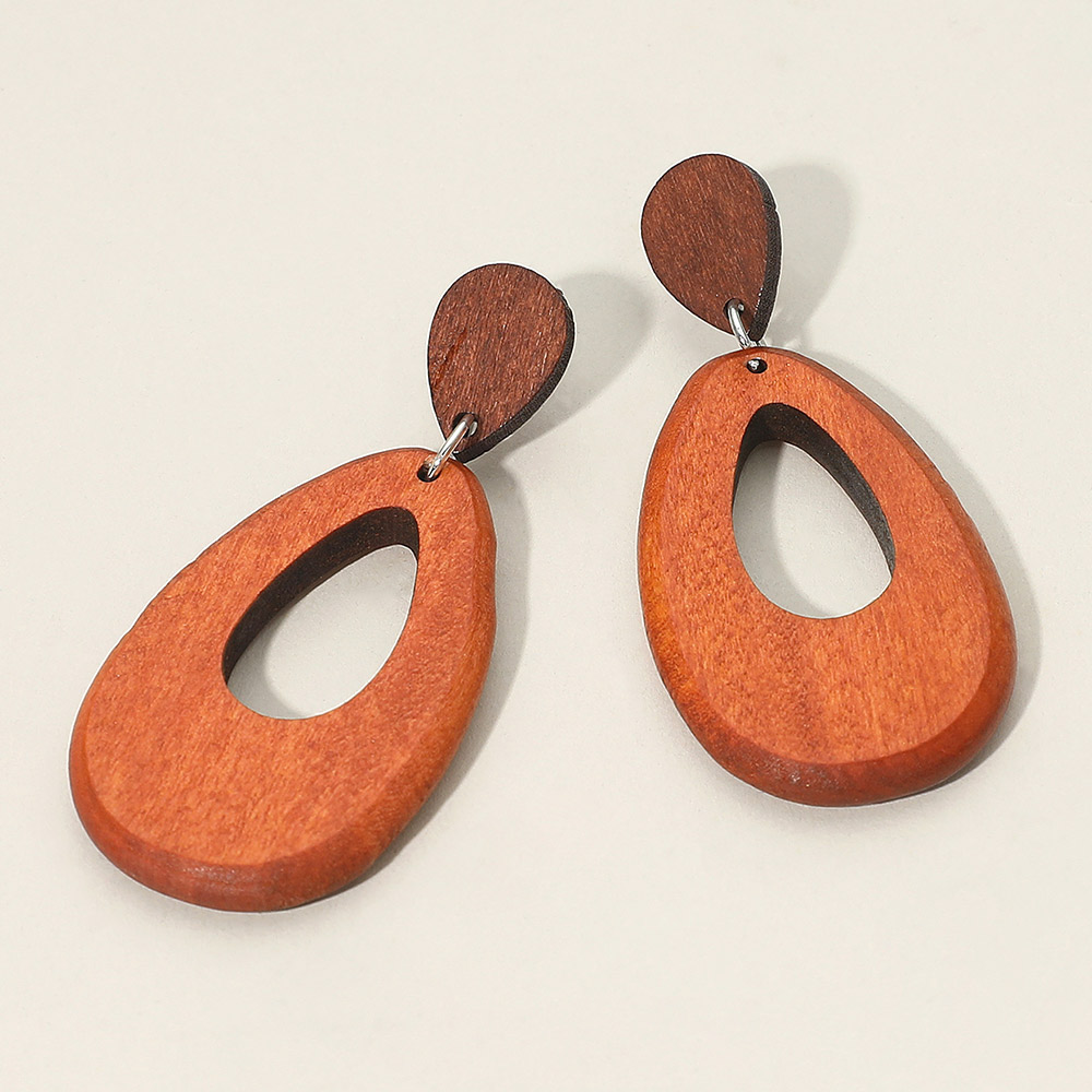 Details • Size : 1.2" X 2.6" • Post Back • Add warm, contemporary style to your look with these lightweight wooden drop earrings featuring smooth, organic cutout shapes. Their minimalist, nature-inspired design offers effortless charm and versatility, making them a perfect accessory for everyday wear or curated modern outfits. • Lead and Nickel Compliant