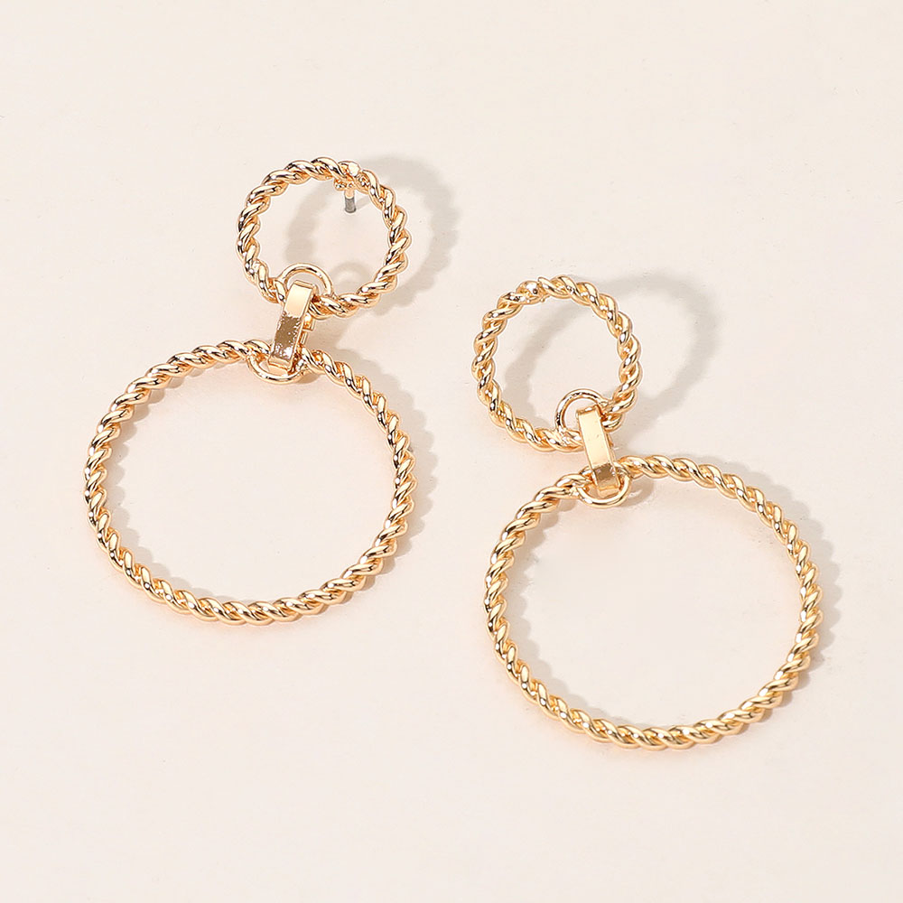 Twisted Metal Wire Double Hoop Link Drop Earrings