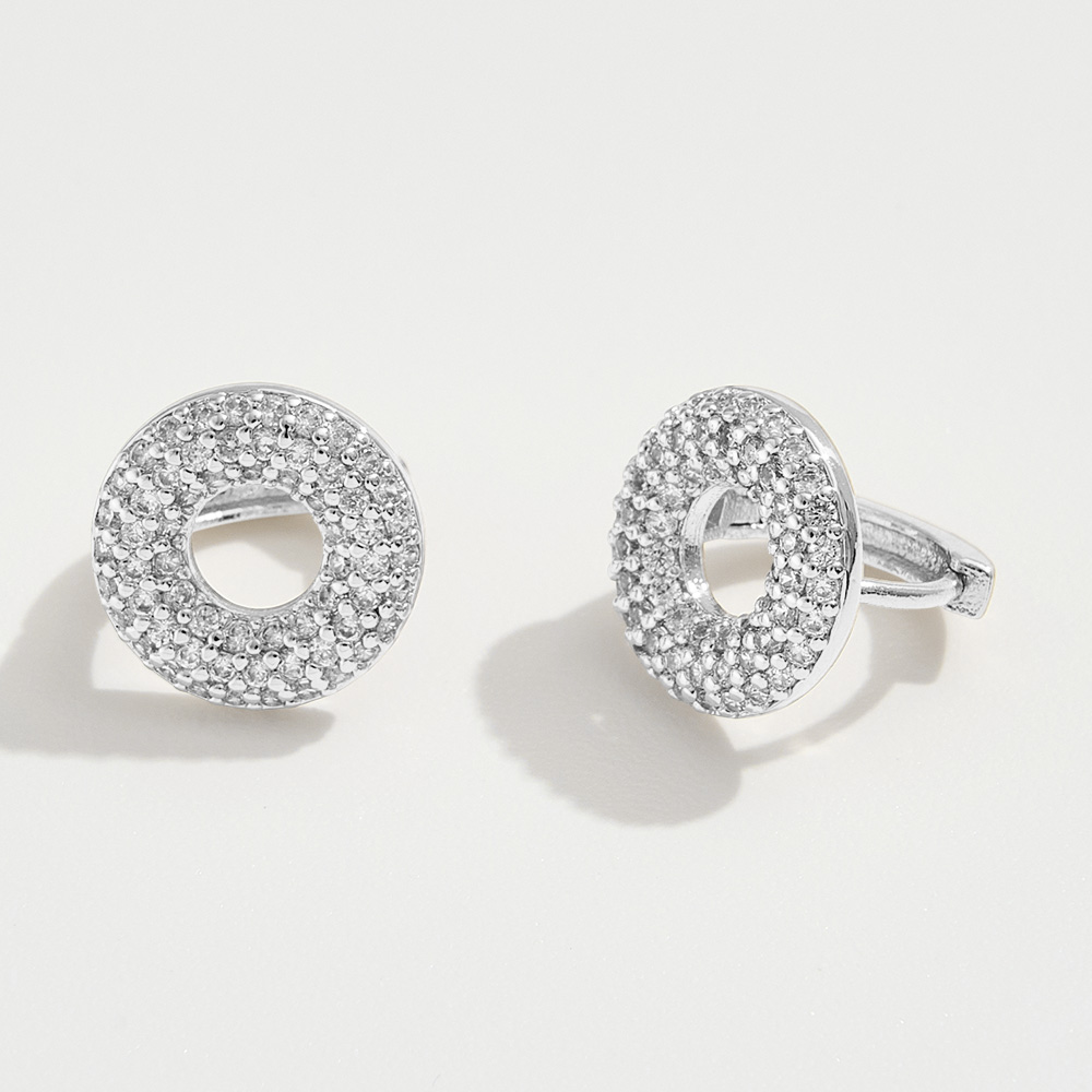 • Add a touch of brilliance with these CZ pavĂ© circle hoop earrings, featuring a bold open-circle design fully encrusted with shimmering stones. Modern yet timeless, they bring statement sparkle and versatile elegance, perfect for both everyday wear and special occasions.