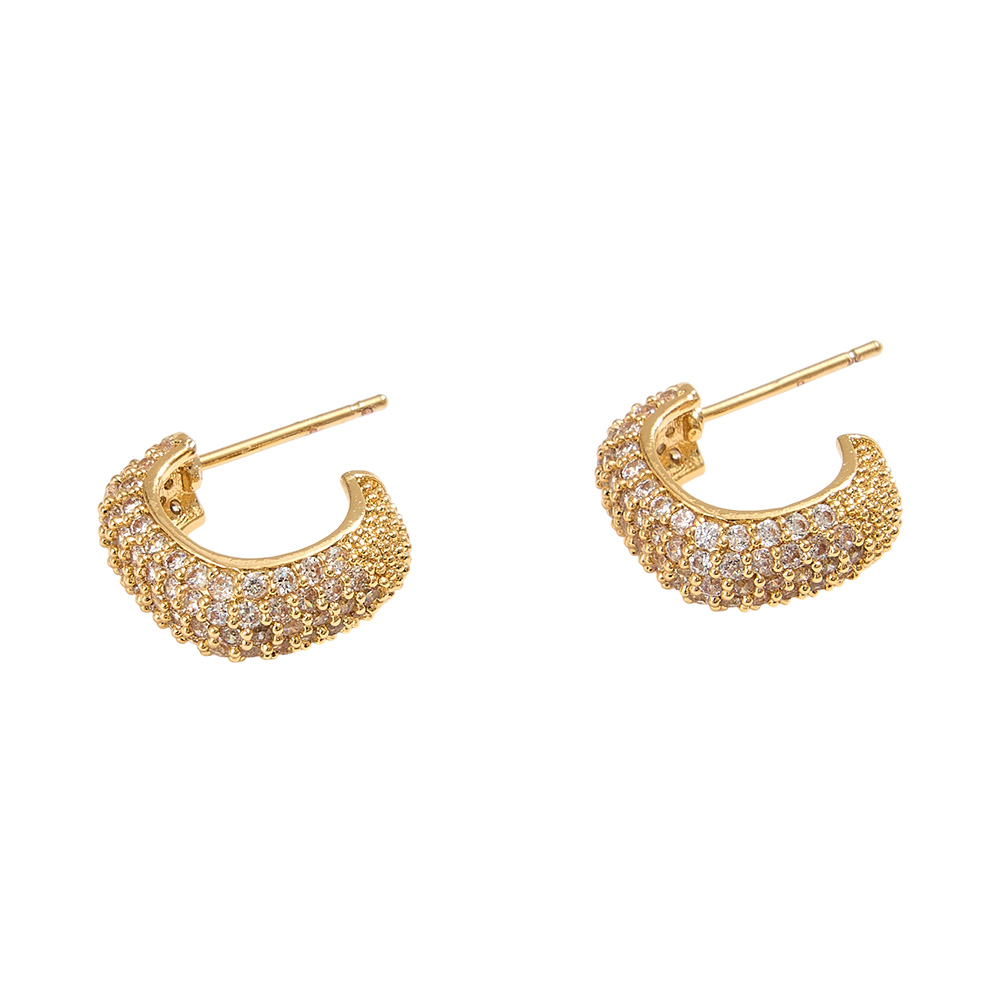 Gold Dipped CZ Stone Embellished Mini Half Hoop Earrings