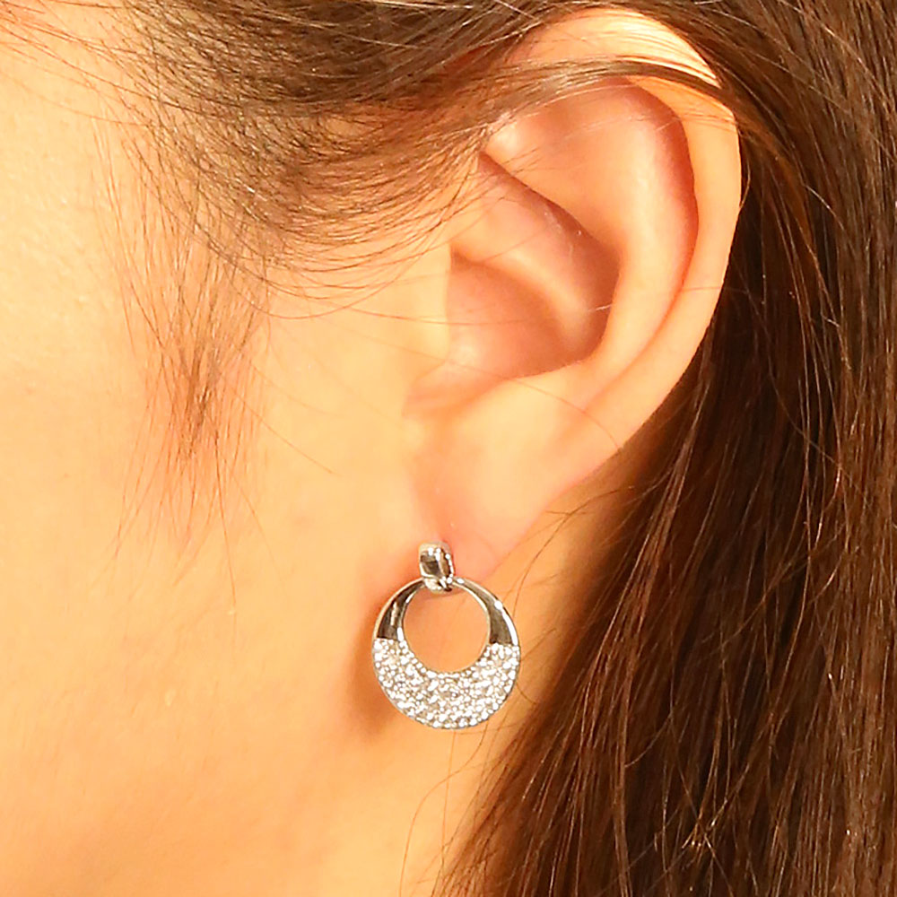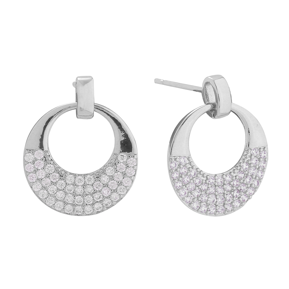 14K White Gold Dipped Half CZ Stone Paved Donut Dangle Earrings