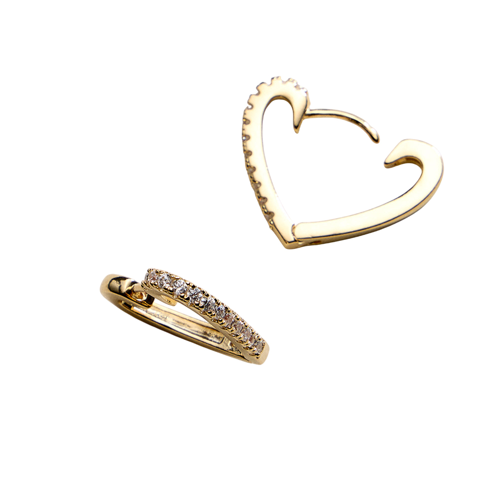 18K Gold Filled CZ Pave Heart Huggie Hoop Earrings
