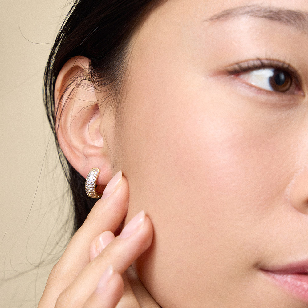 18K Gold Filled CZ Pave Huggie Hoop Earrings