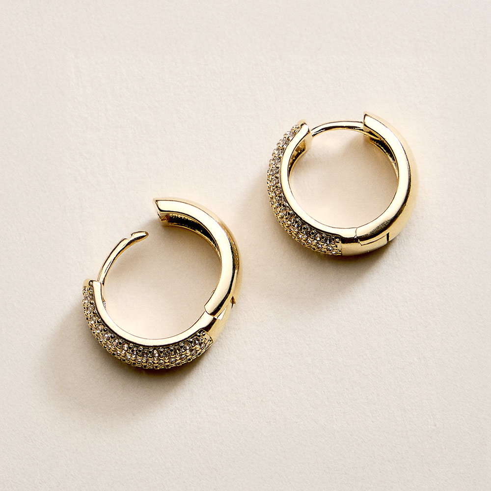 18K Gold Filled CZ Pave Huggie Hoop Earrings