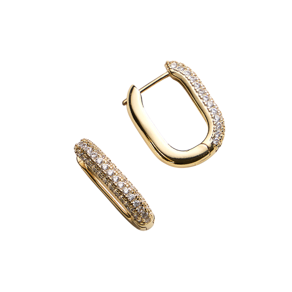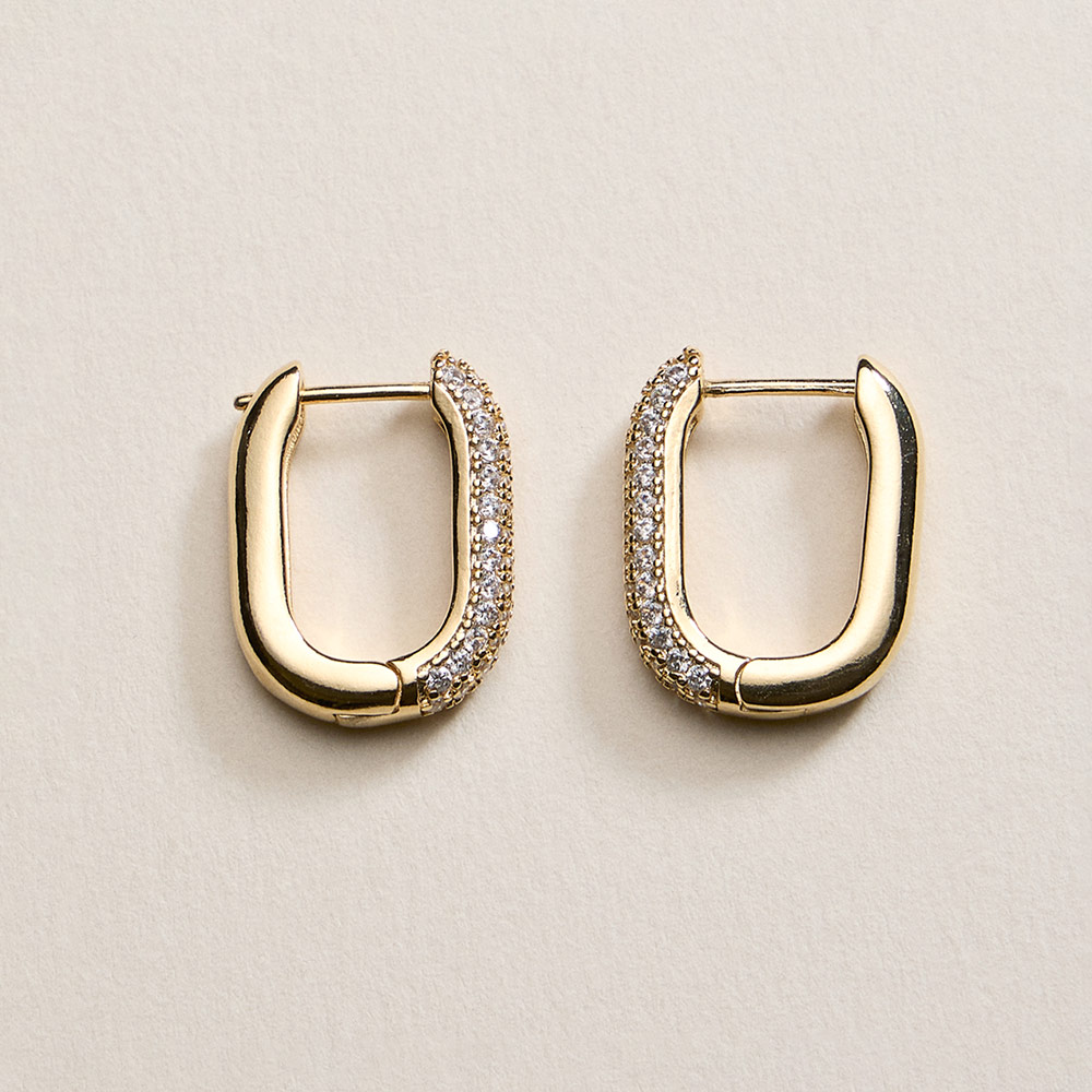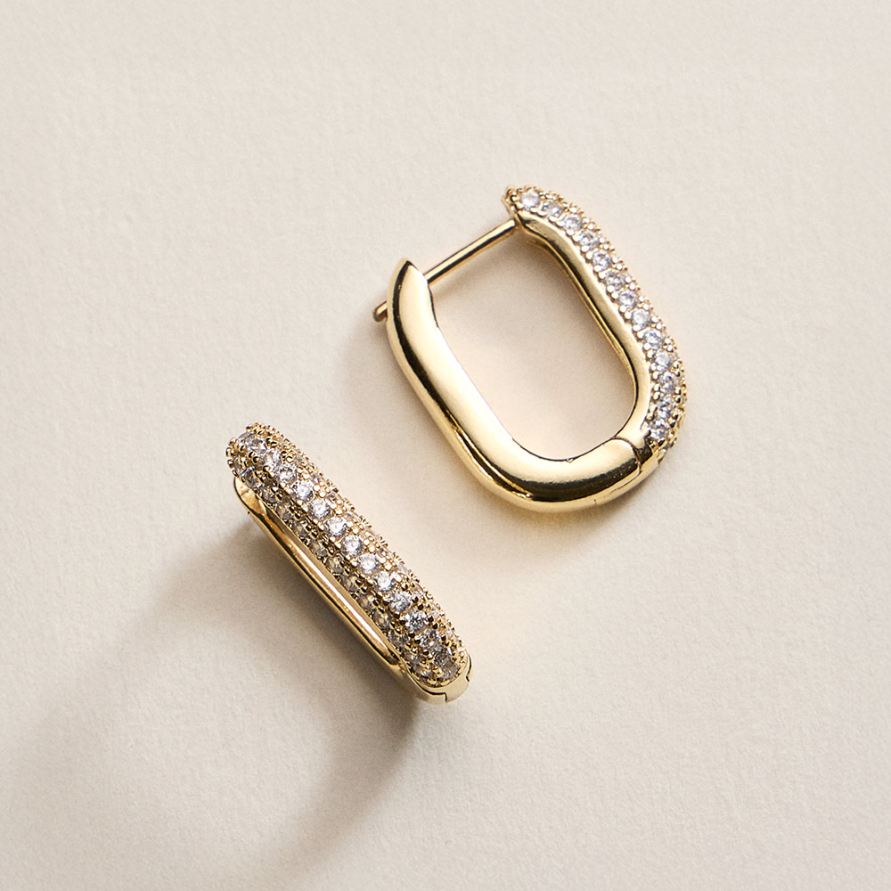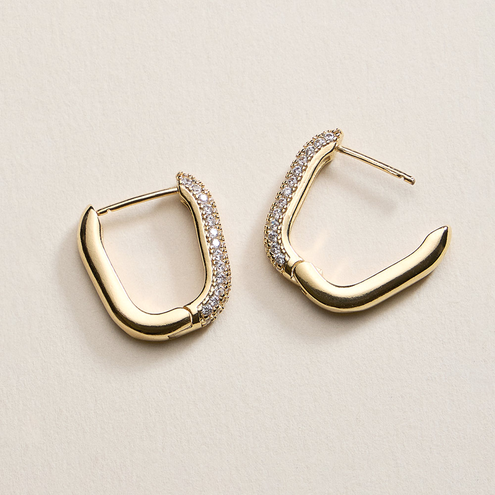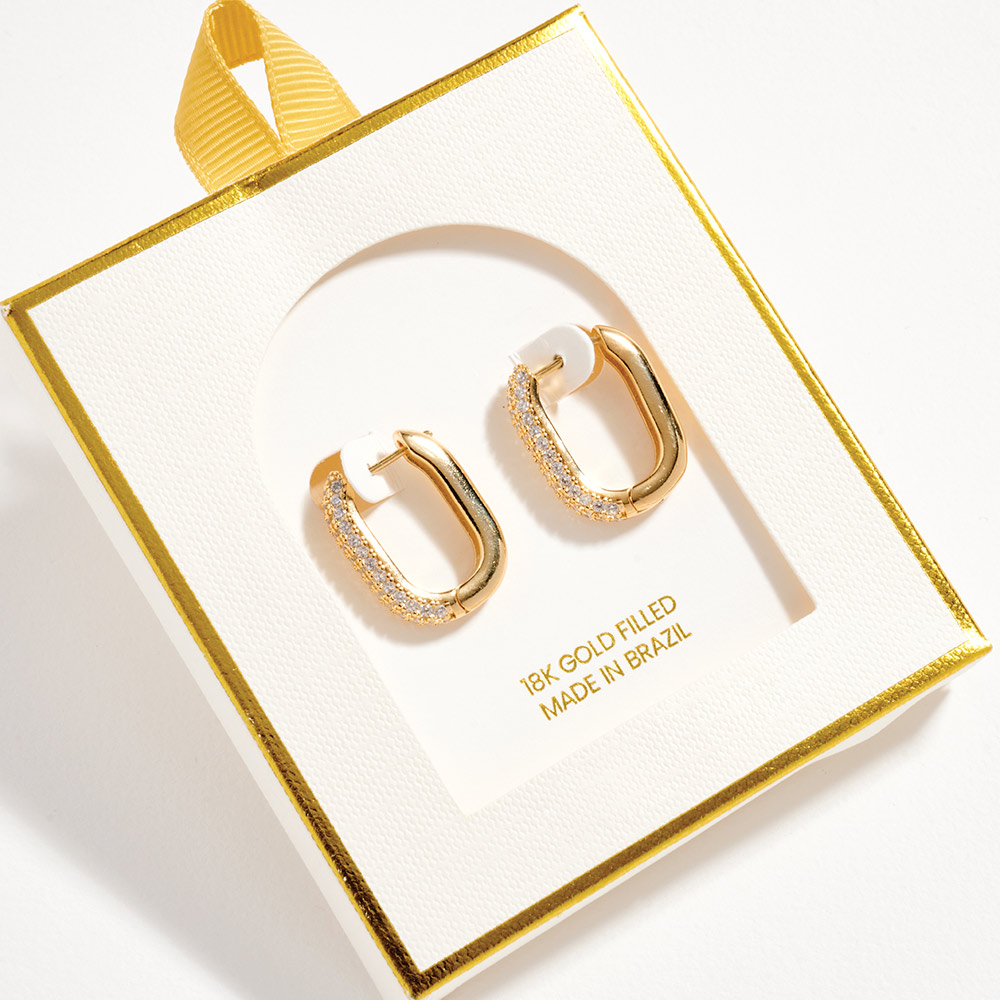 18K Gold Filled CZ Pave Rectangular Huggie Hoop Earrings