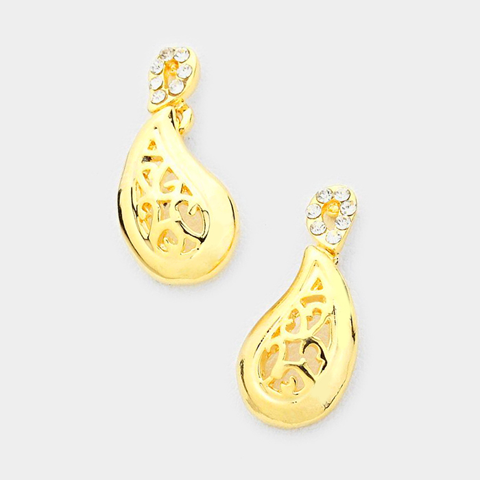 Stone Accented Antique Metal Filigree Hoop Earrings