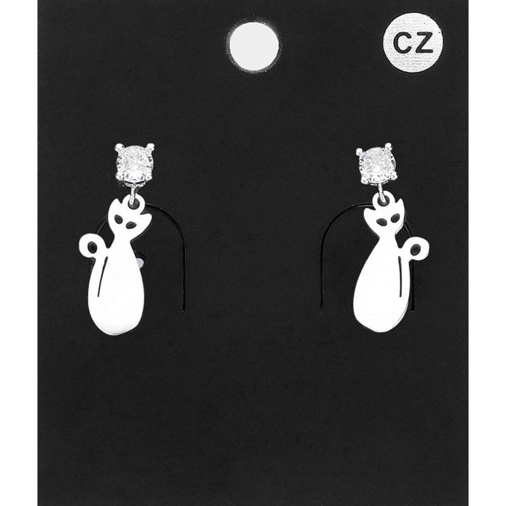 CZ Stone Pointed Cat Plate Dangle Earrings