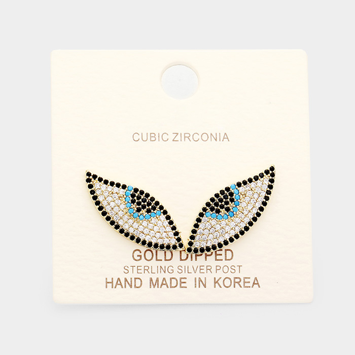 Gold Dipped Cubic Zirconia Evil Eye Earrings