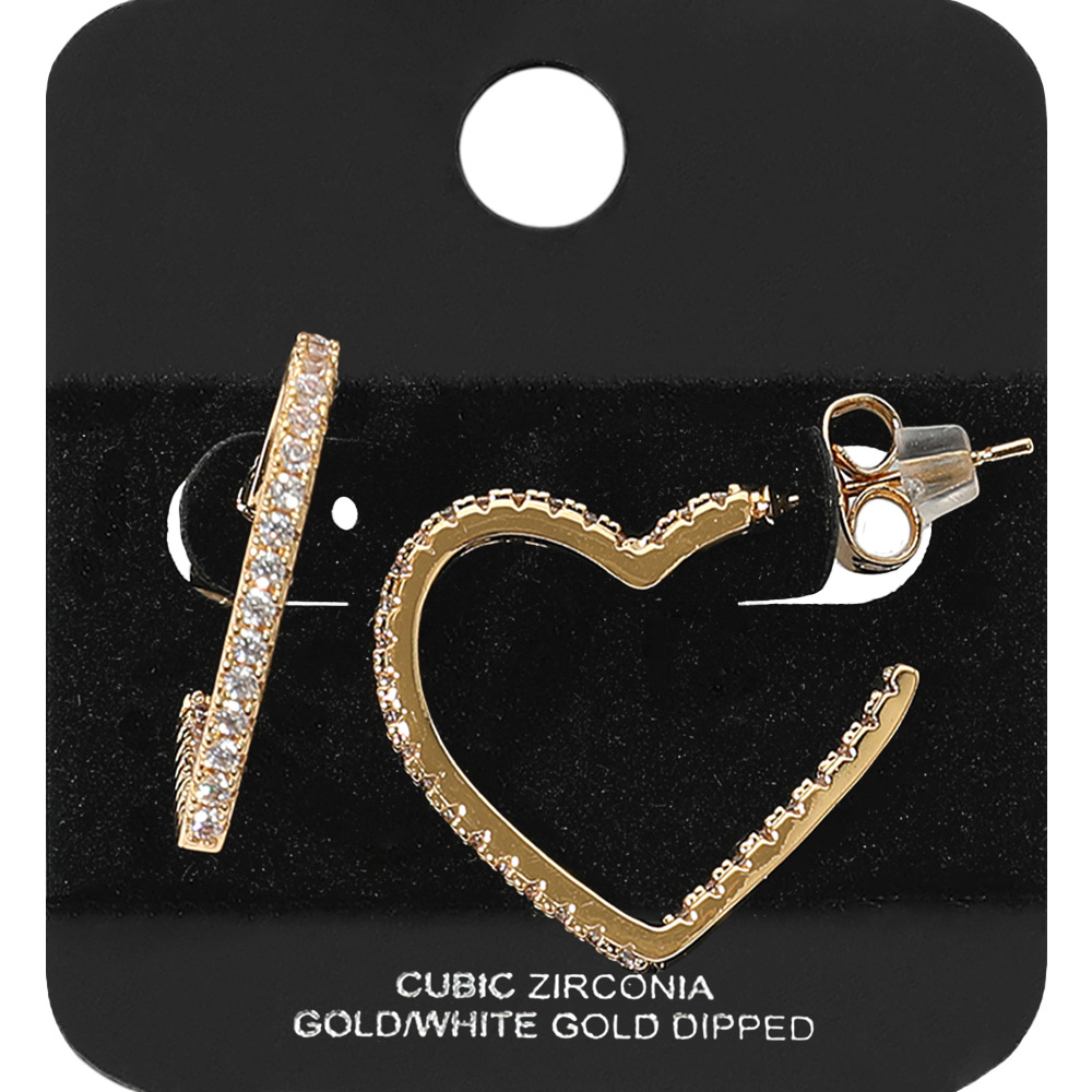 Details • Size : 1" X 0.8" • Post Back • Add romantic elegance to your look with these heart shaped hoop earrings adorned with shimmering crystal accents. Lightweight yet stylish, they bring a modern twist to classic hoops, making them perfect for daily wear or special celebrations. • CZ Cubic Zirconia • Gold Dipped • Lead and Nickel Compliant