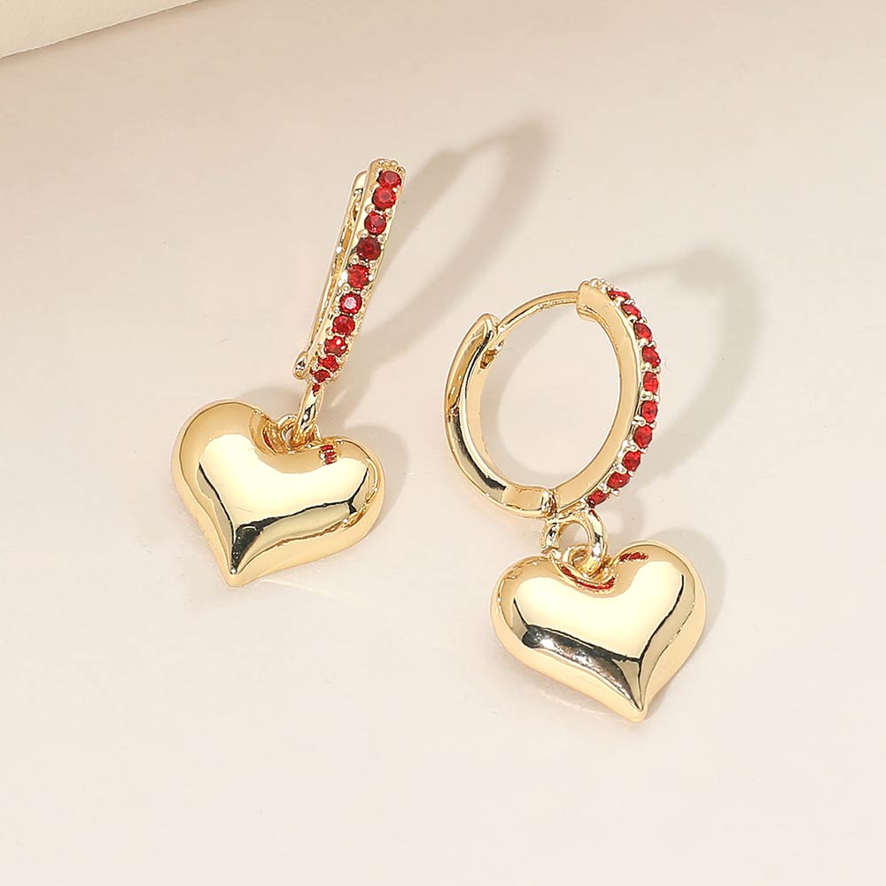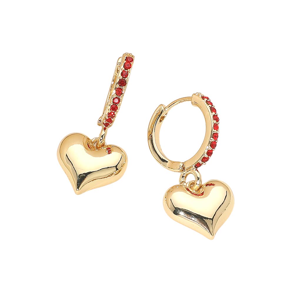 Gold Dipped Heart Charm Drop Dangle Stone Pave Huggie Hoop Earrings