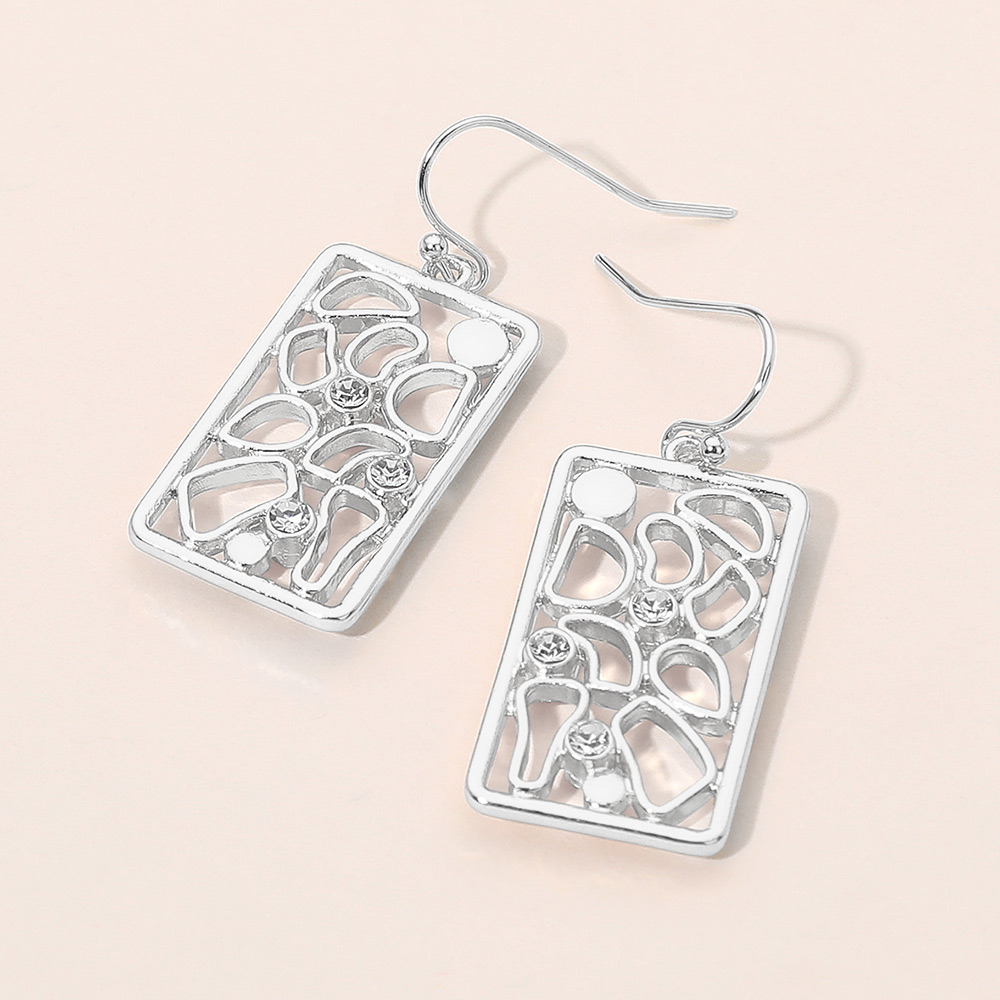 Rhinestone Accent Abstract Openwork Rectangle Drop Dangle Earrings Rhinestone Accent Abstract Openwork Rectangle Drop Dangle Earrings