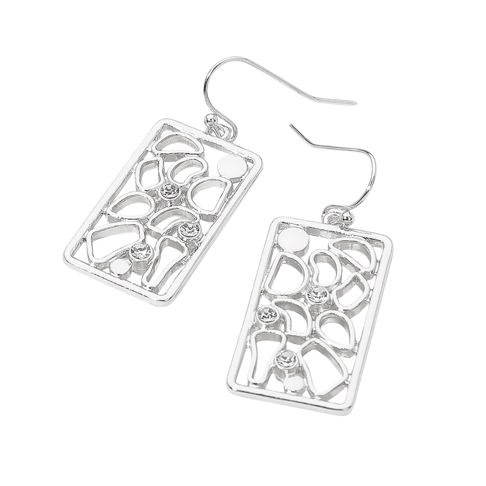Rhinestone Accent Abstract Openwork Rectangle Drop Dangle Earrings