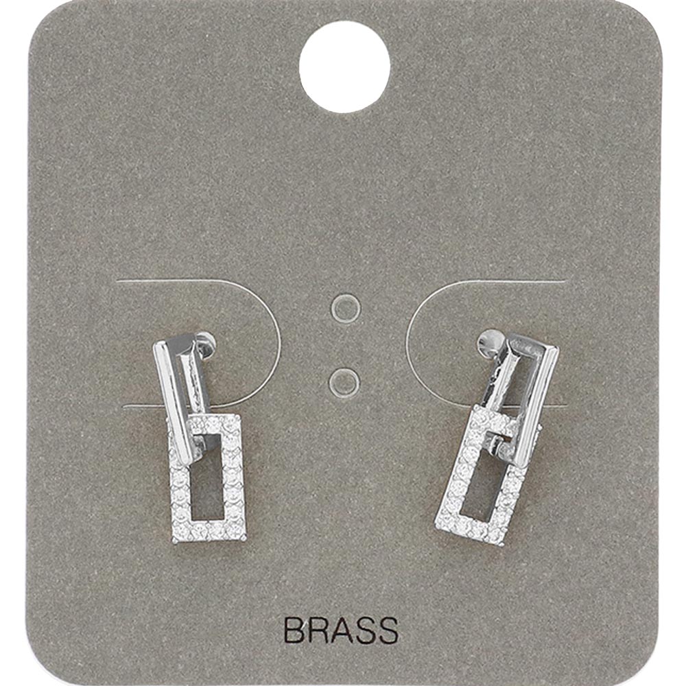 Details • Size : 0.25" X 0.7" • Post Back • Modern rectangular hoop earrings featuring a sleek design with shimmering pave crystal accents. Made from durable brass, these earrings add a touch of refined sparkle to both casual and formal outfits. • Lead and Nickel Compliant • Brass