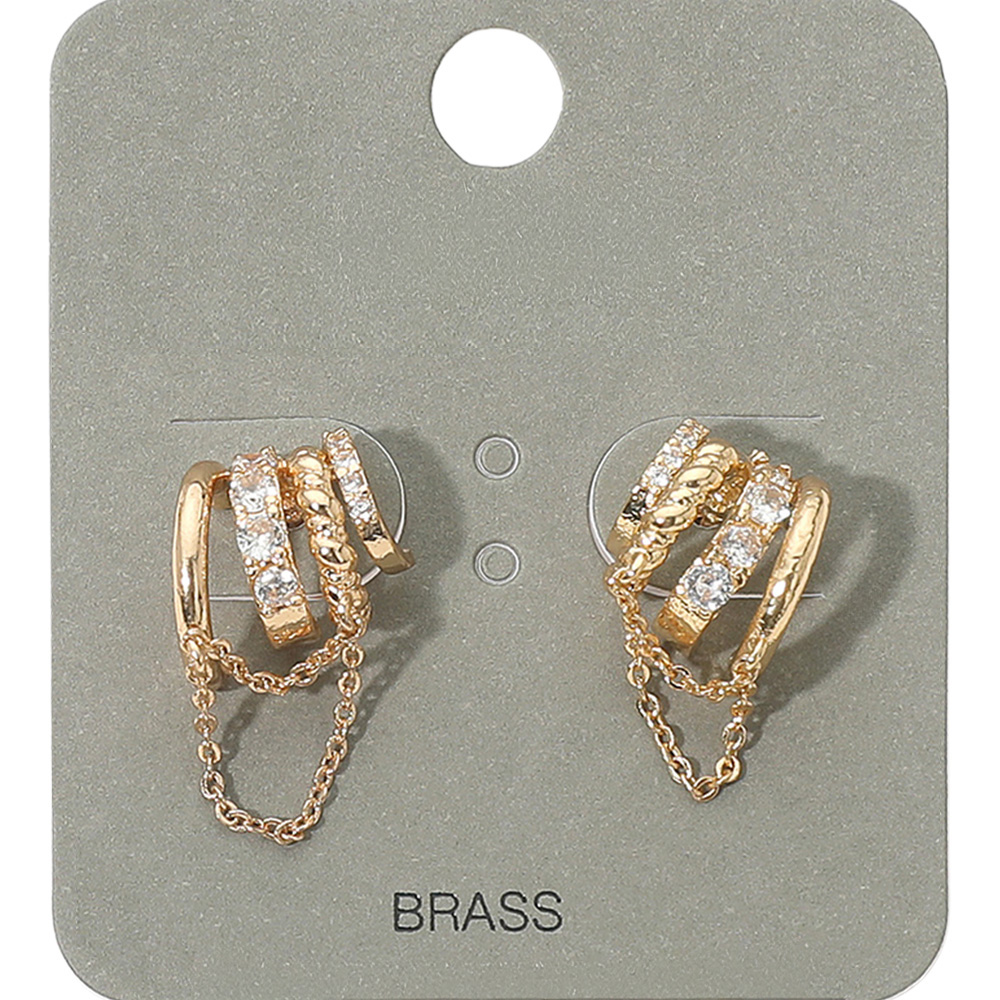 Details • Size : 0.5" X 0.8" • Post Back • Stylish ear cuff earrings designed with layered crystal accents and delicate chain details. A modern accessory that adds sparkle and edge to elevate casual wear, evening outfits, or party looks. • Brass • Lead and Nickel Compliant
