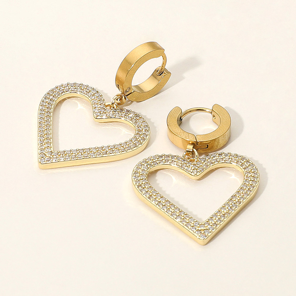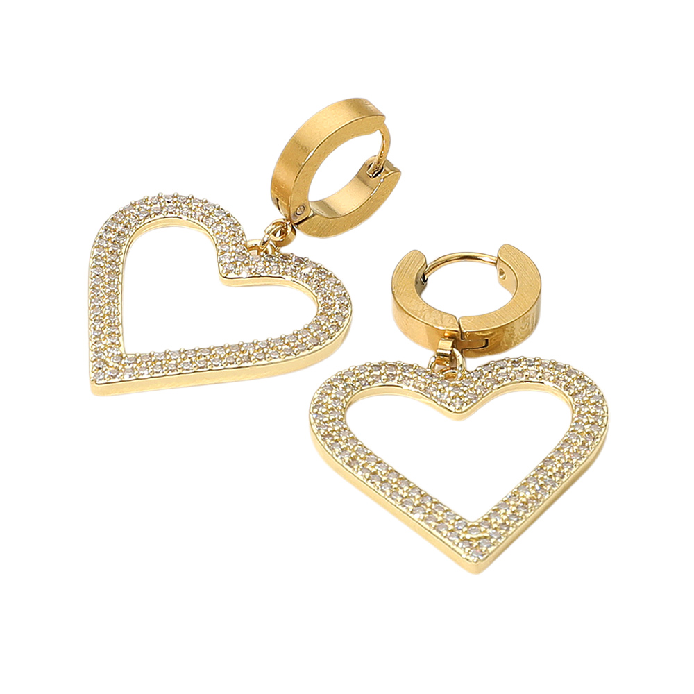 Stainless Steel CZ Stone Paved Open Heart Charm Dangle Huggie Earrings Stainless Steel CZ Stone Paved Open Heart Charm Dangle Huggie Earrings Stainless Steel CZ Stone Paved Open Heart Charm Dangle Huggie Earrings