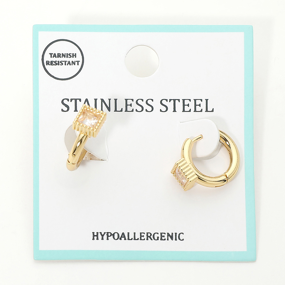 Stainless Steel Square Stone Accent Mini Huggie Hoop Earrings