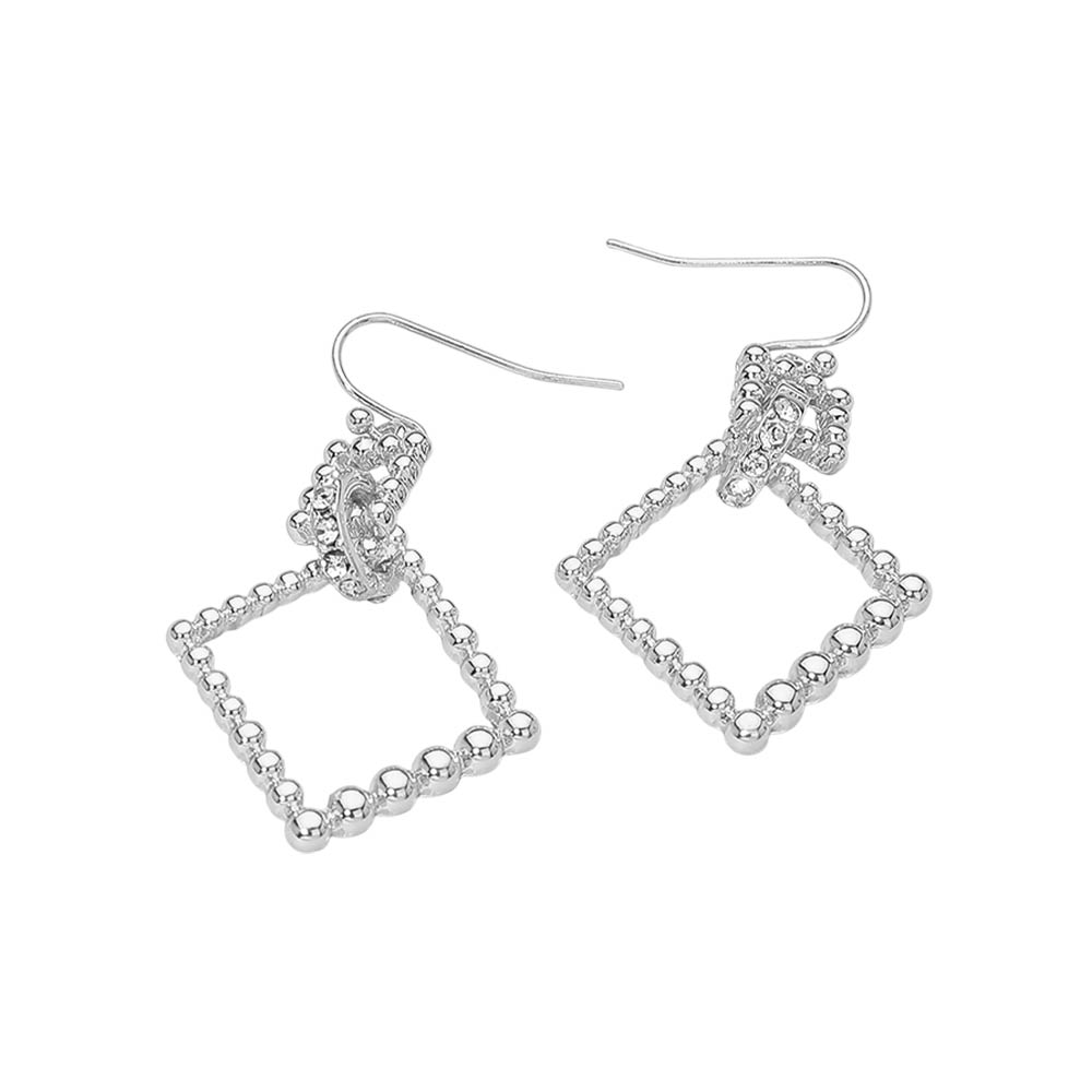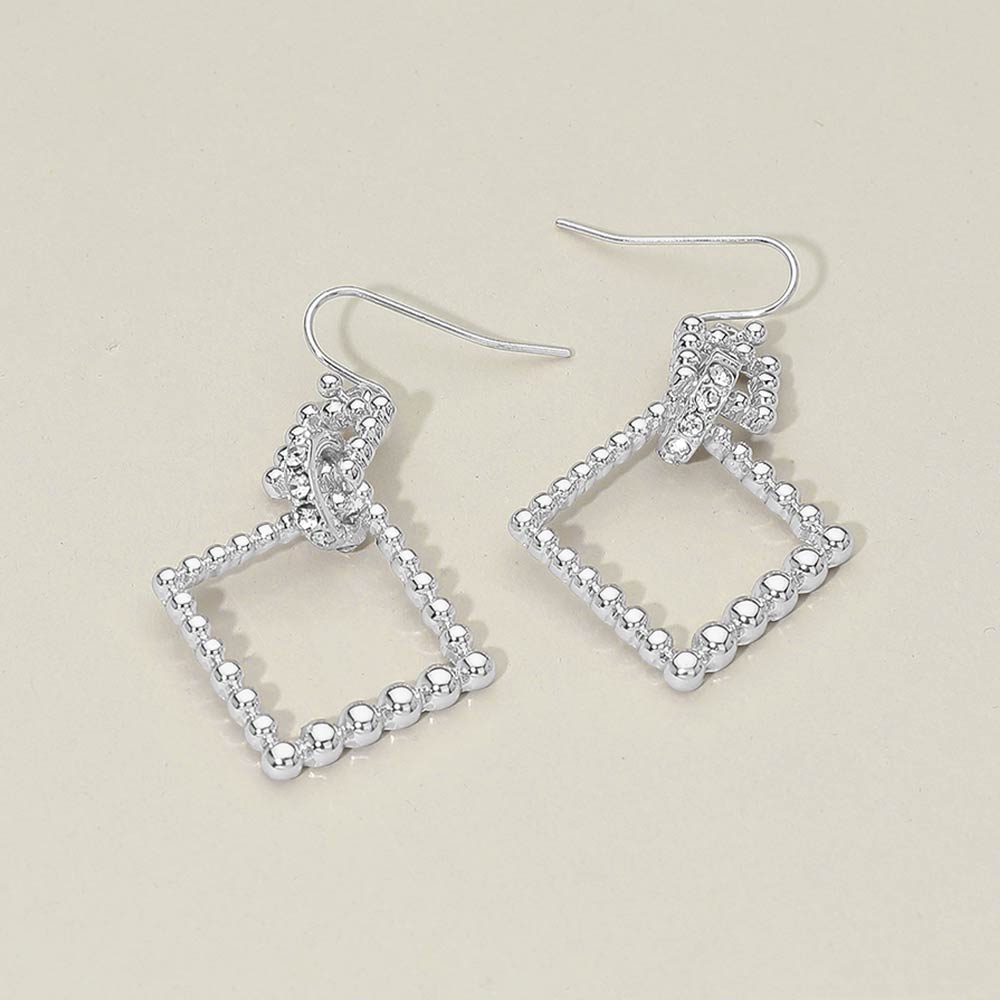 • Add a modern geometric touch with these beaded square link drop earrings, featuring an open square frame accented by a textured knot detail for subtle dimension and movement. Designed to stand out without overpowering, this drop style pairs effortlessly with everyday looks or elevated outfits. A versatile accessory ideal for curated collections, gifting, and customers seeking statement earrings with a clean, contemporary silhouette.