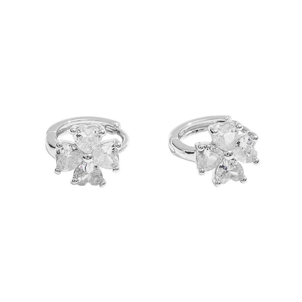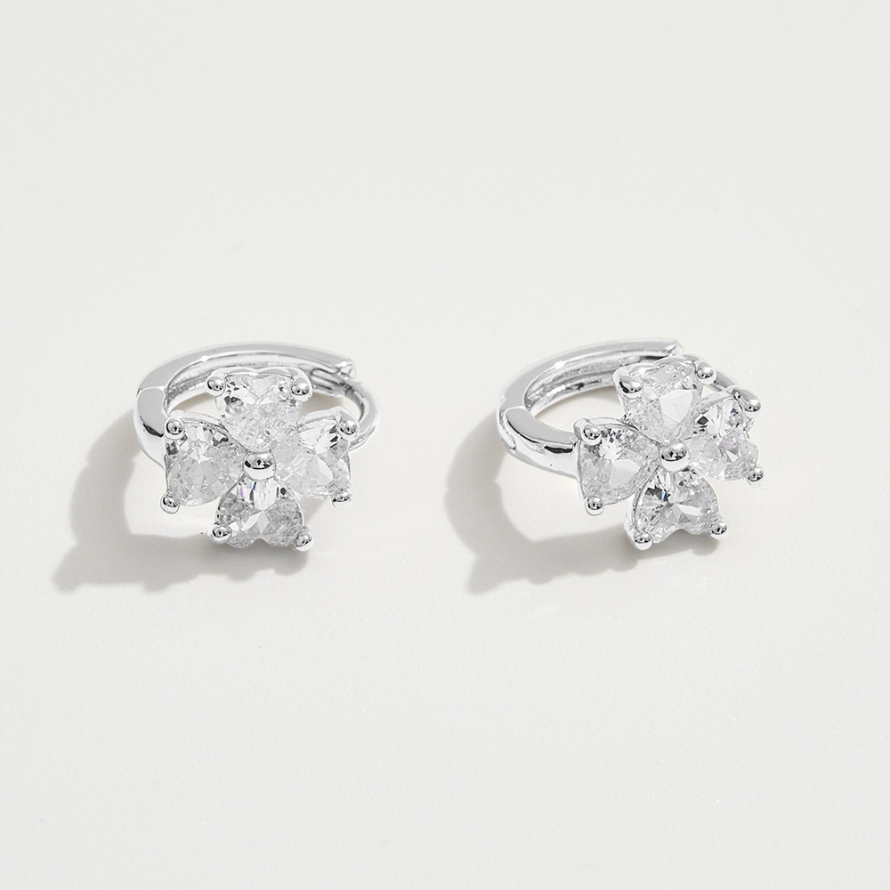 Details • Size : 0.6" X 0.5" X 0.4" • Huggie Back • Add elegance to your style with these floral hoop earrings featuring heart-shaped cubic zirconia arranged in a charming flower design. Their radiant sparkle and delicate craftsmanship make them perfect for both everyday wear and special occasions. • Brass • CZ Cubic Zirconia • Gold Dipped • Hypoallergenic • Lead and Nickel Compliant • Made In Korea