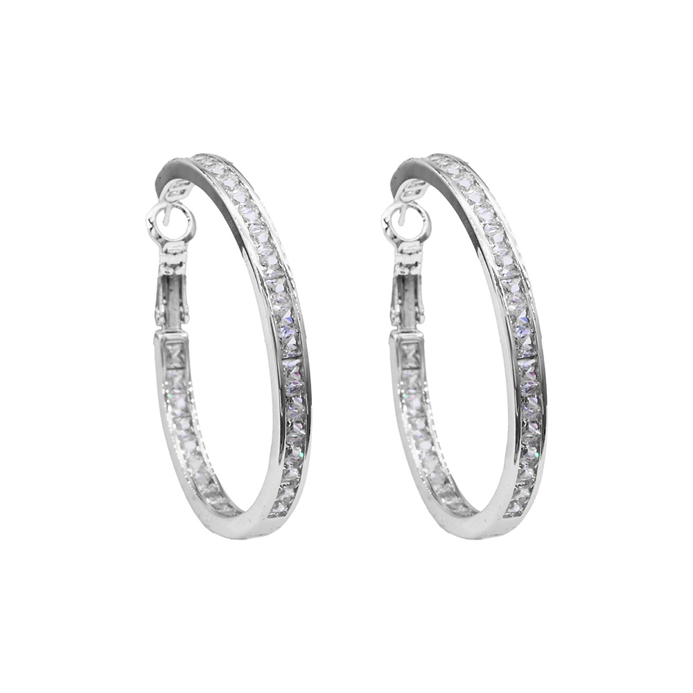 White Gold Dipped CZ Stone Channel Hoop Earrings White Gold Dipped CZ Stone Channel Hoop Earrings