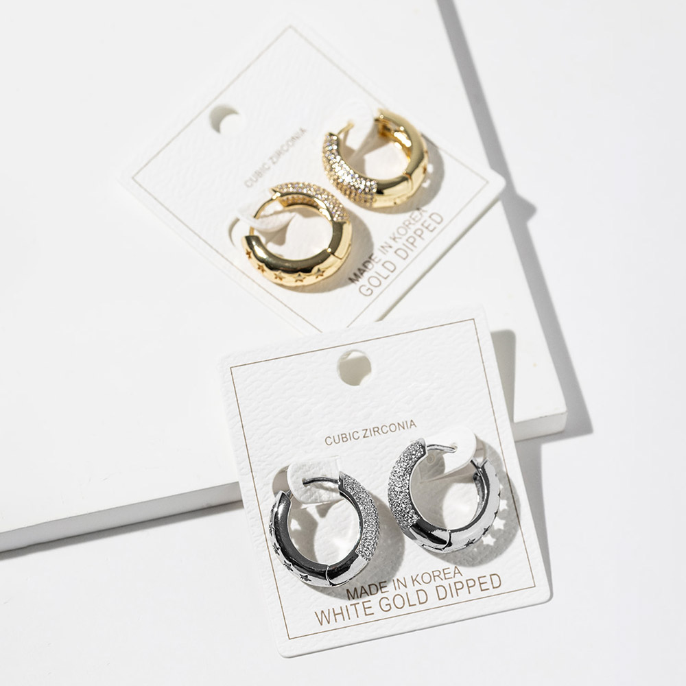 • Refined pavĂ© hoop huggie earrings featuring a compact rounded silhouette with shimmering stone accents and secure closure. Designed for everyday wear, work outfits, and special occasions, these earrings deliver timeless elegance, subtle sparkle, and versatile style that elevates both casual and polished looks.