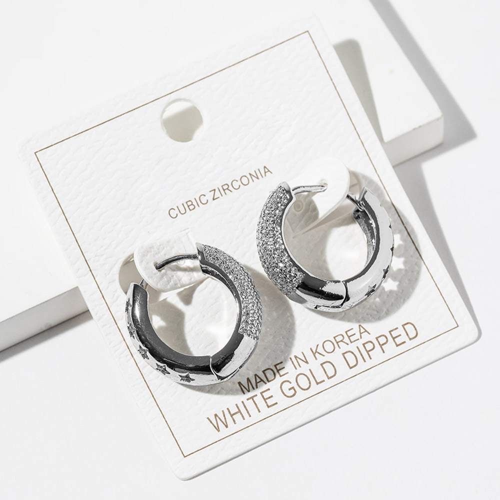 White Gold Dipped CZ Stone Paved Huggie Hoop Earrings