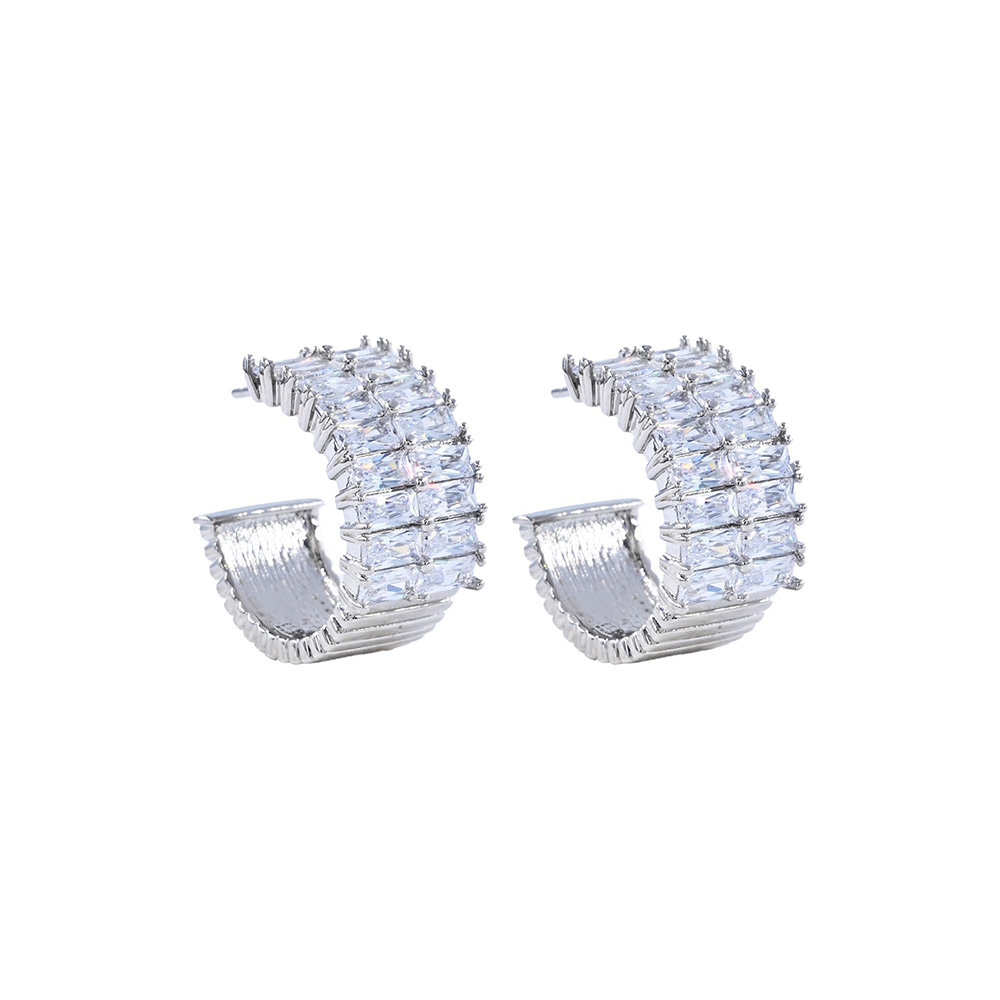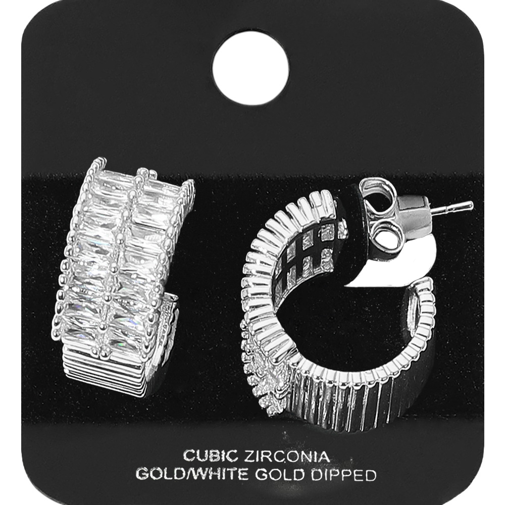 Details • Size : 1" X 0.75" X 0.4" • Post Back • Add a bold touch to your style with wide hoop earrings featuring baguette-cut cubic zirconia for dazzling shine. Their structured design blends elegance and edge, making them perfect for upgrading everyday outfits or completing a statement evening look. • CZ Cubic Zirconia • Gold Dipped • Lead and Nickel Compliant