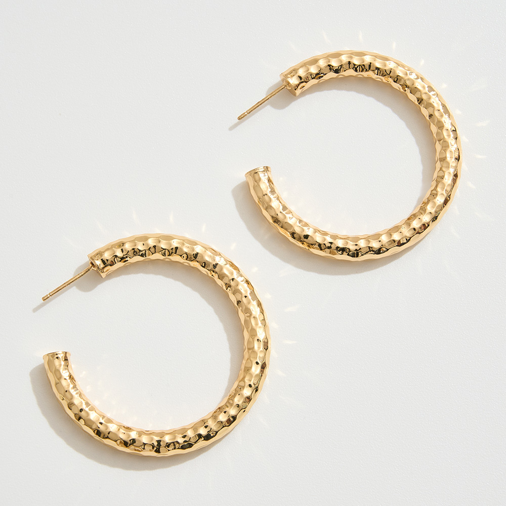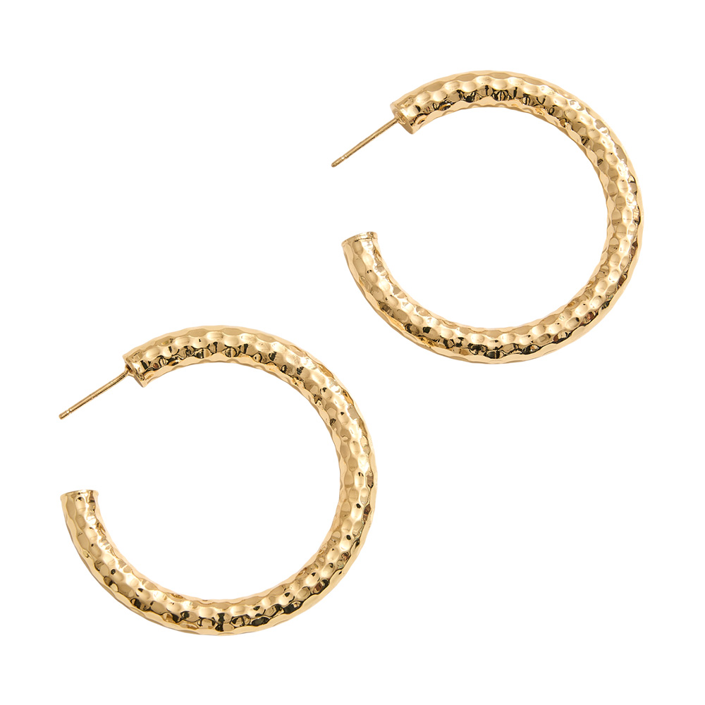 14K Gold Dipped Hammered Textured Hoop Earrings
