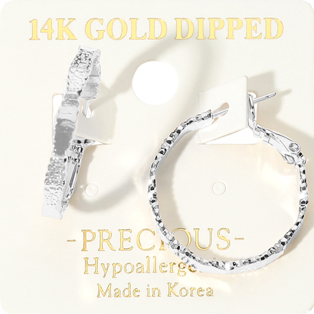 14K Gold Dipped Hypoallergenic Textured Hoop Earrings