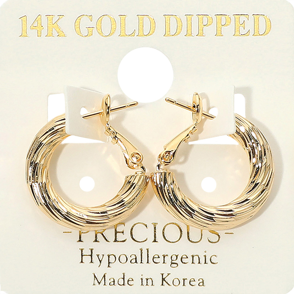 14K Gold Dipped Hypoallergenic Textured Hoop Earrings