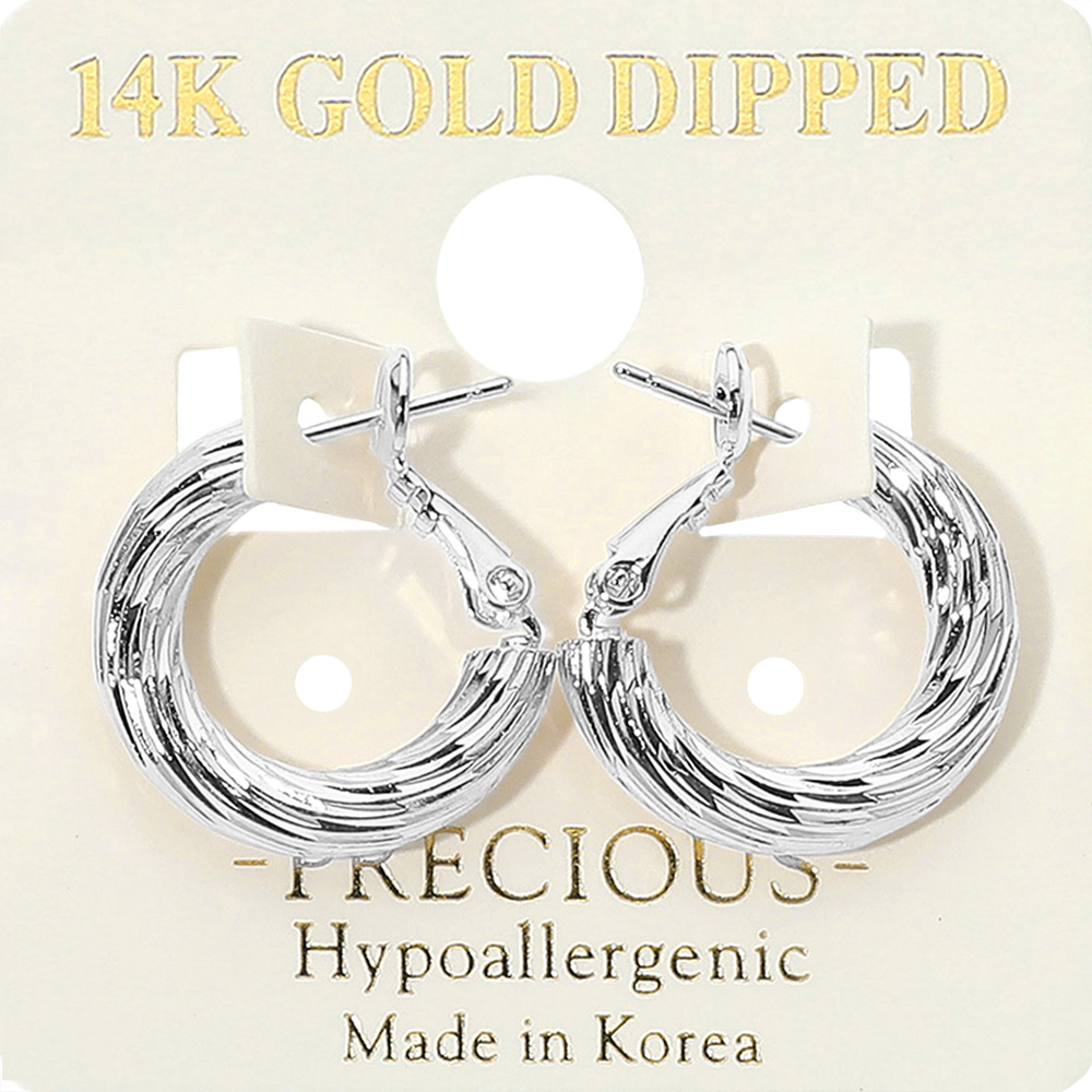 Details • Size : 0.8" X 0.75" • Omega Back • Elevate your look with these textured round hoop earrings designed for a refined yet versatile appeal. Their polished, ribbed finish adds dimension and sophistication, while the secure clasp ensures comfort for everyday wear or special occasions. • Gold Dipped • Hypoallergenic • Made In Korea