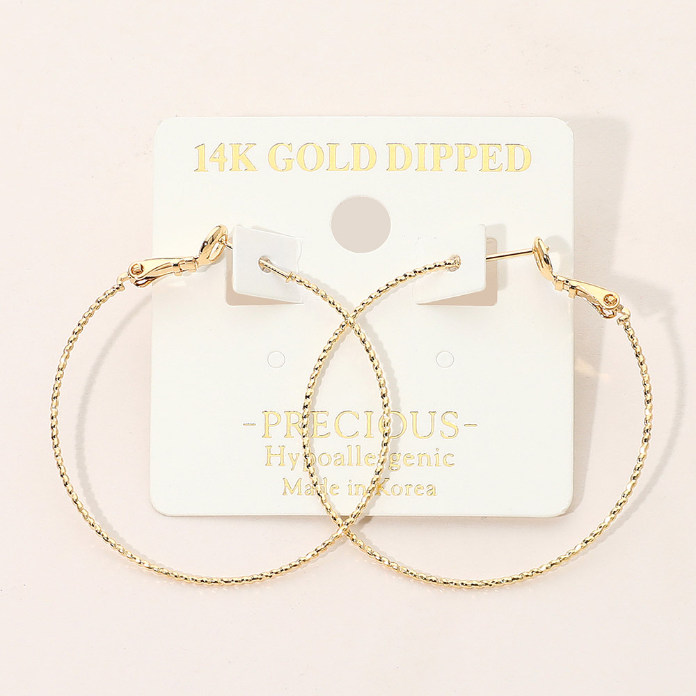 • Lightweight hoop earrings featuring a thin, textured surface for a stylish statement. Designed for comfort and elegance, these hoops are perfect for daily wear or special events. An easy match for casual and dressy looks alike.