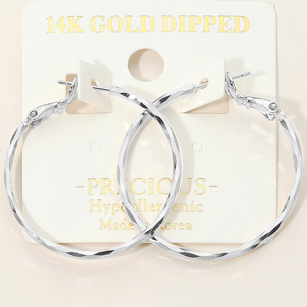 • These classic twisted hoop earrings feature a refined faceted design that adds subtle texture and shine. Designed with a secure latch closure for easy wear and a dependable fit, they are ideal for everyday styling or special occasions, offering timeless appeal, comfort, and versatile elegance.
