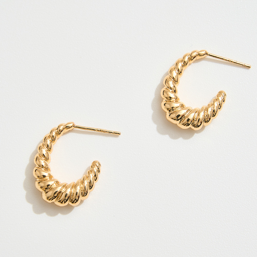 • Elevate your style with these twisted ribbed hoop earrings, featuring a bold sculptural design that adds depth and texture. Their sleek, polished finish makes them the perfect blend of modern elegance and timeless charm, ideal for day-to-night wear.