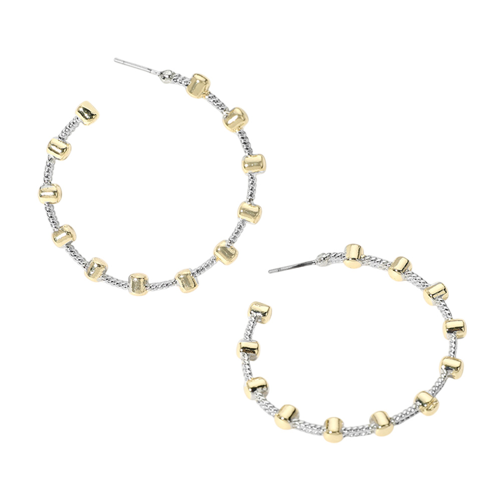 14K Gold Plated Two Tone Bead Hoop Earrings