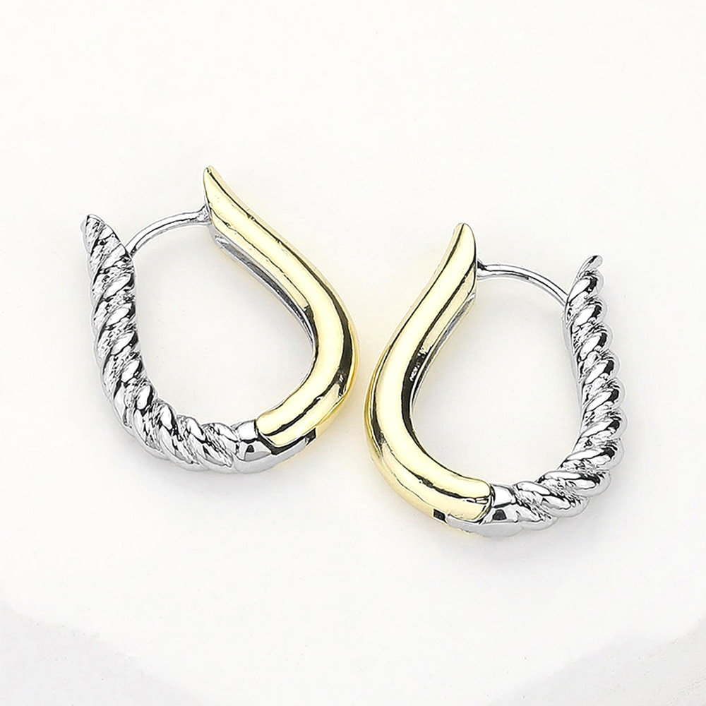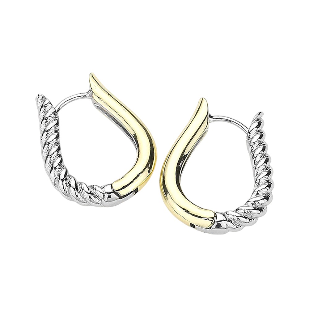 14K Gold Plated Two Tone Teardrop Huggie Hoop Earrings