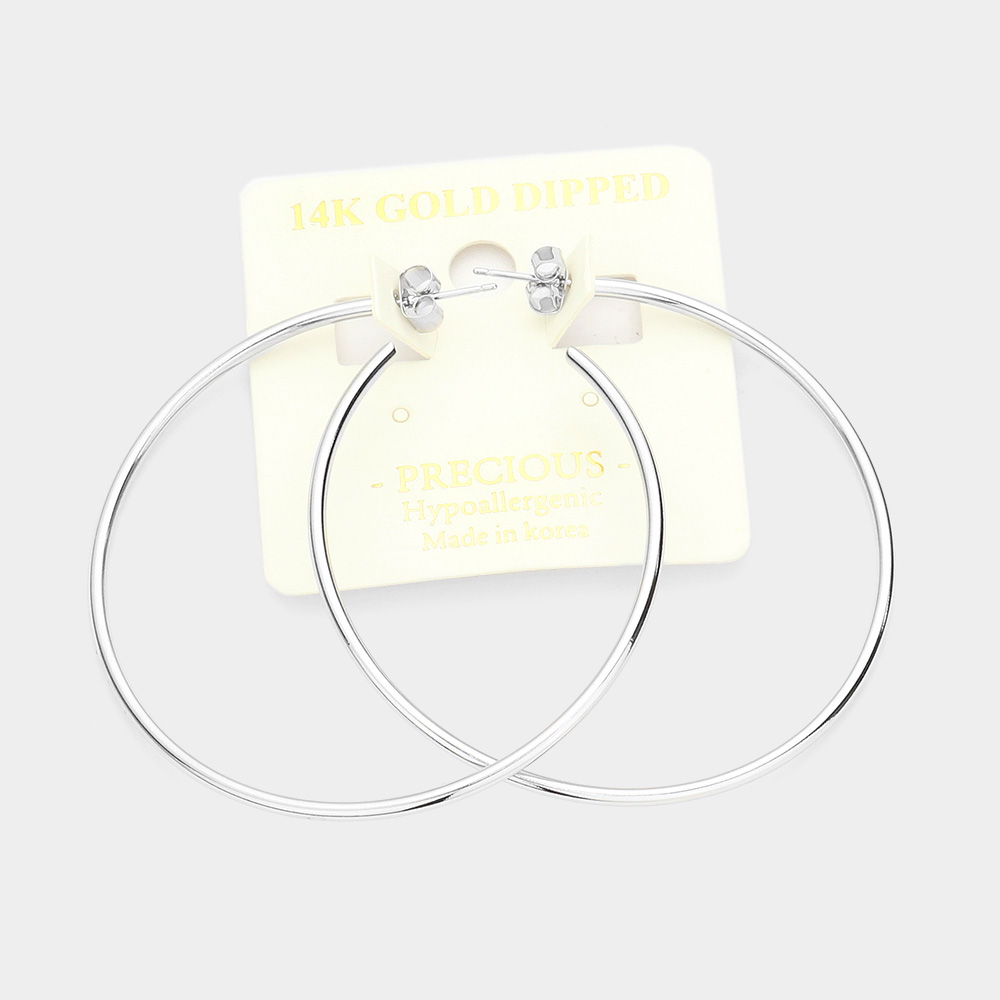 14K White Gold Dipped 2.1 Inch Metal Hoop Earrings