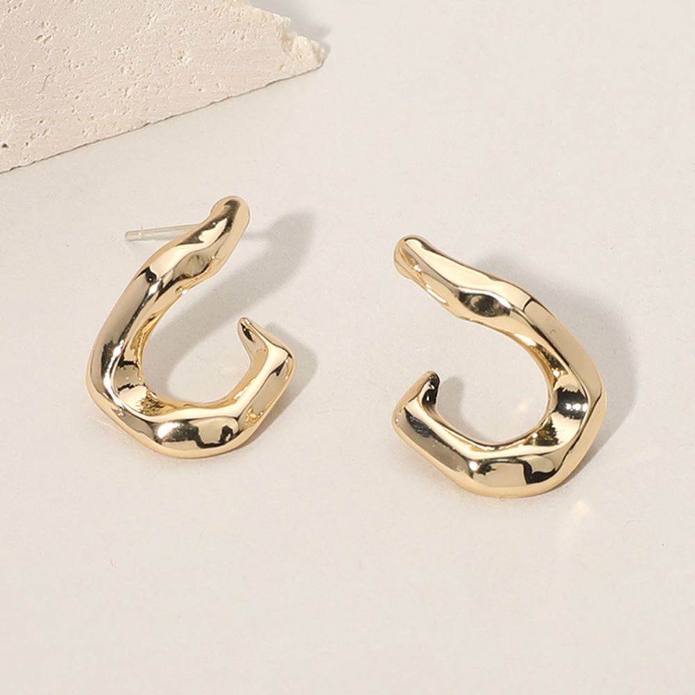 Details • Size : 0.6" X 0.8" • Modern irregular mini hoop earrings featuring a textured abstract design and sterling silver posts. Lightweight and stylish, perfect for everyday wear or gifting. A chic accessory that adds a unique touch to any outfit. • Lead and Nickel Compliant • Made In Korea • Gold Dipped • Sterling Silver Post