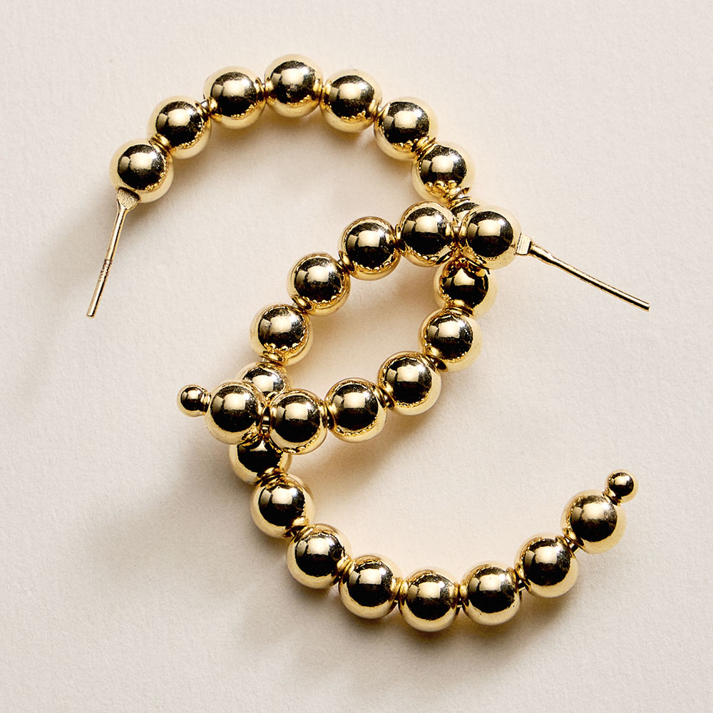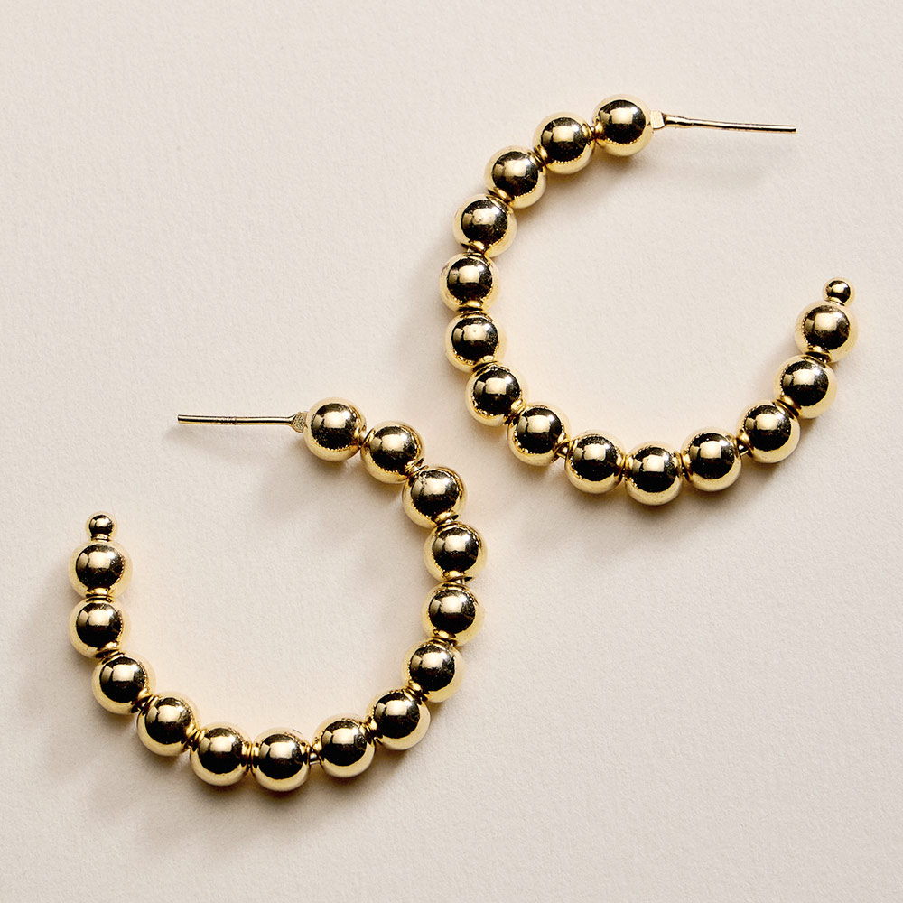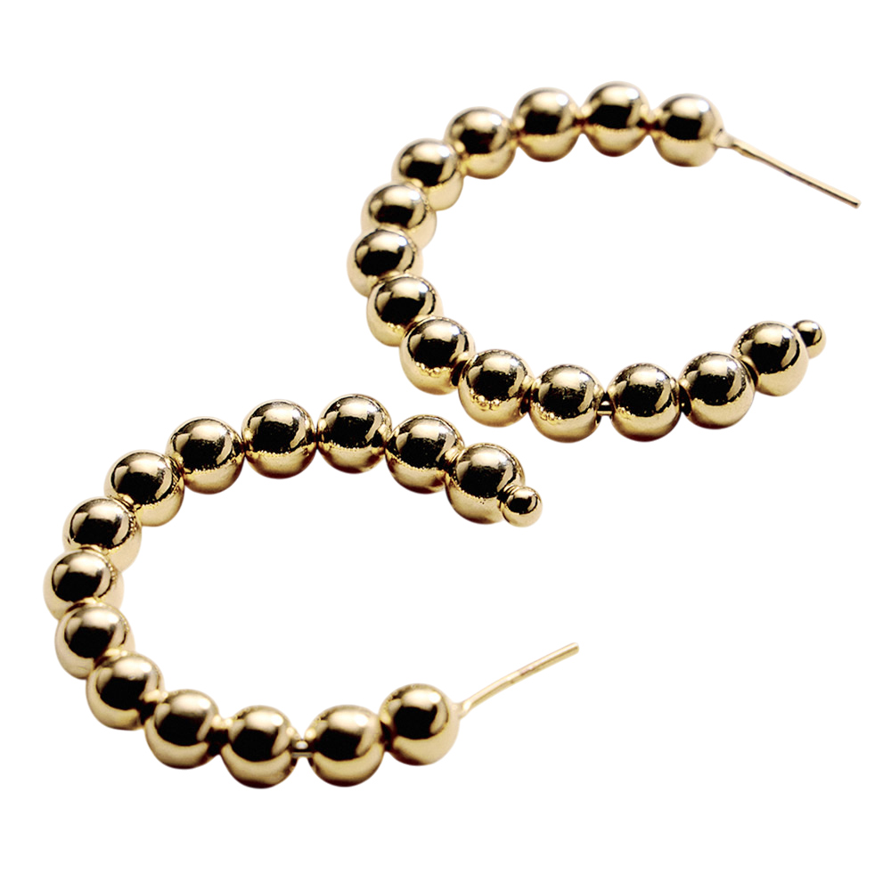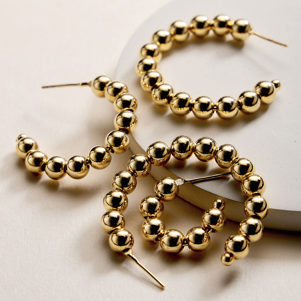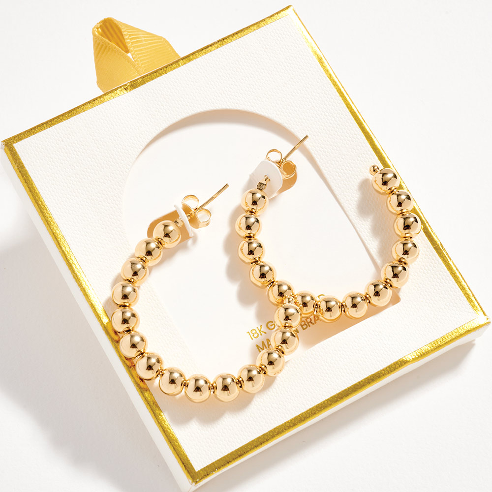 Details • Size : 1.6" X 1.6" X 0.2" • Post Back • Stylish beaded hoop earrings featuring a classic round silhouette that adds texture and dimension to any look. Designed for comfortable wear, these hoops elevate everyday outfits and special occasions alike, making them a versatile accessory for layering, gifting, or statement styling. • Gold Filled • Hypoallergenic • Lead and Nickel Compliant • Made In Brazil