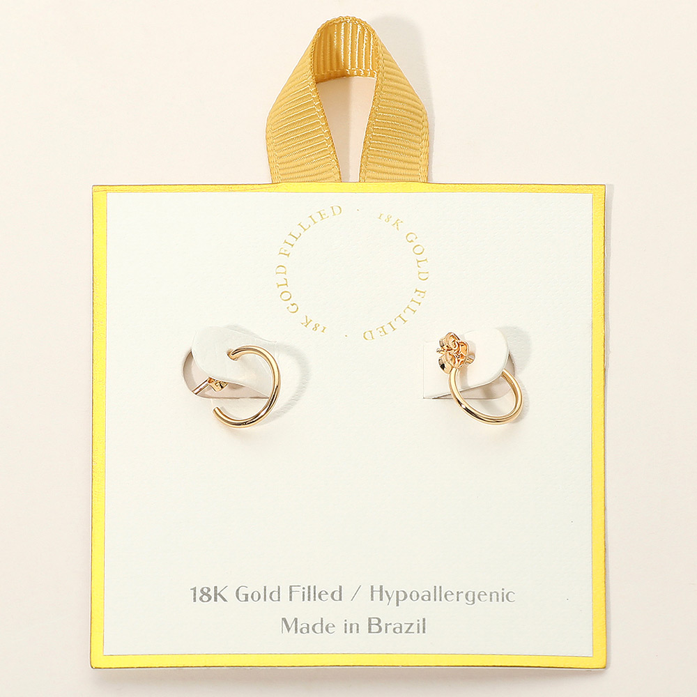 Details • Size : 0.5" X 0.5" • Post Back • Delicate small hoop earrings crafted with a sleek and timeless design. Lightweight and versatile, these earrings are perfect for daily wear or layering with other jewelry, adding a subtle touch of elegance to both casual and dressy outfits. • Gold Filled • Hypoallergenic • Lead and Nickel Compliant • Made In Brazil