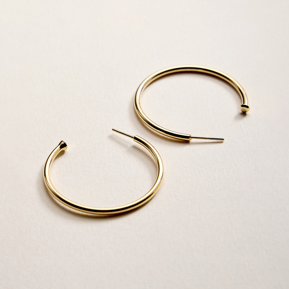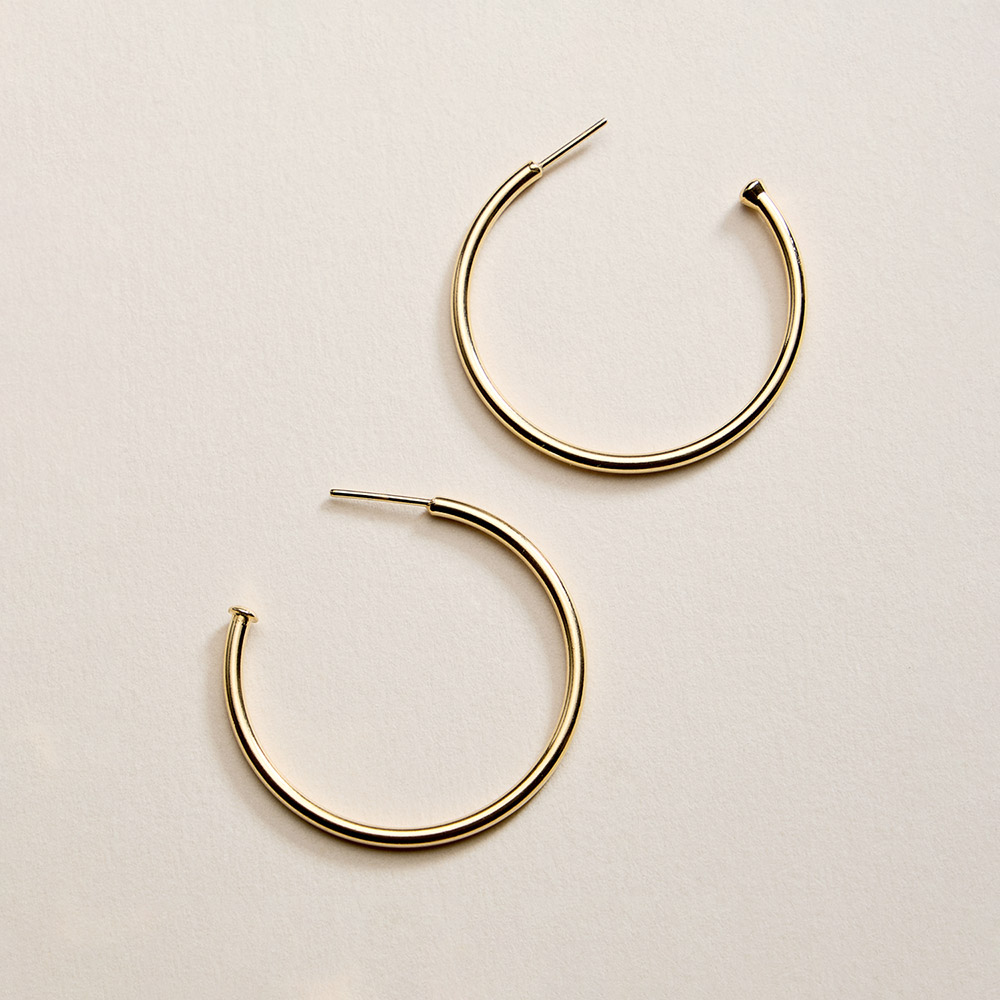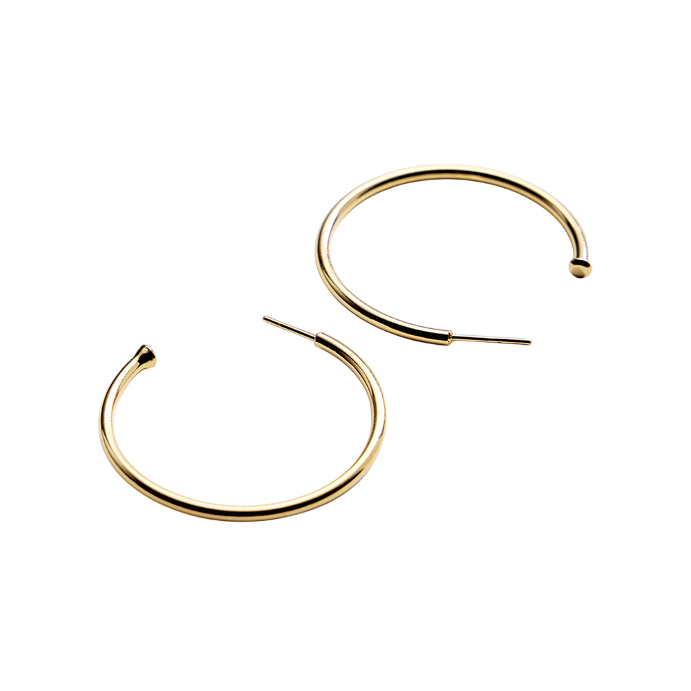 Details • Size : 1.3" X 1.3" • Post Back • Classic slim open hoop earrings featuring a smooth, rounded profile and easy everyday wear. Designed for comfort and versatility, these hoops transition effortlessly from casual styling to polished looks, making them a must-have accessory for boutiques, gift collections, and timeless jewelry assortments. • Lead and Nickel Compliant • Hypoallergenic • Gold Filled • Made In Brazil