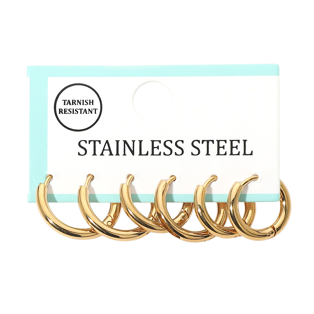 3Pairs - Stainless Steel Classic Huggie Hoop Earring Set